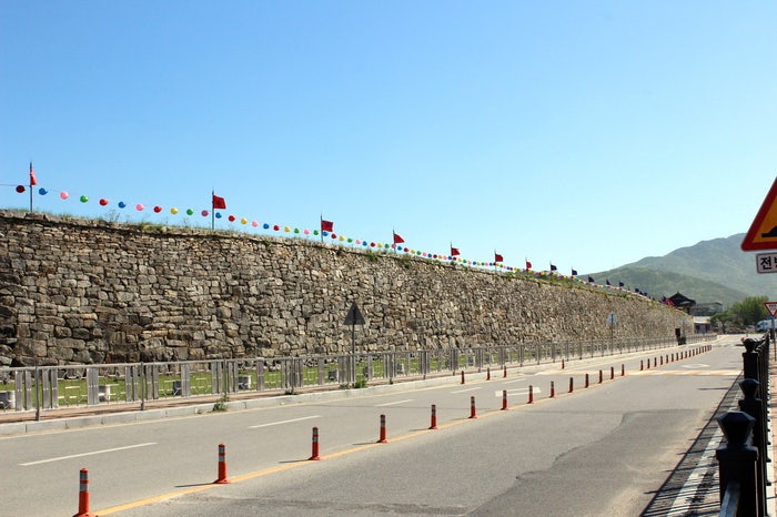 성벽이 작은 돌들이 촘촘히 쌓여 만들어졌다.