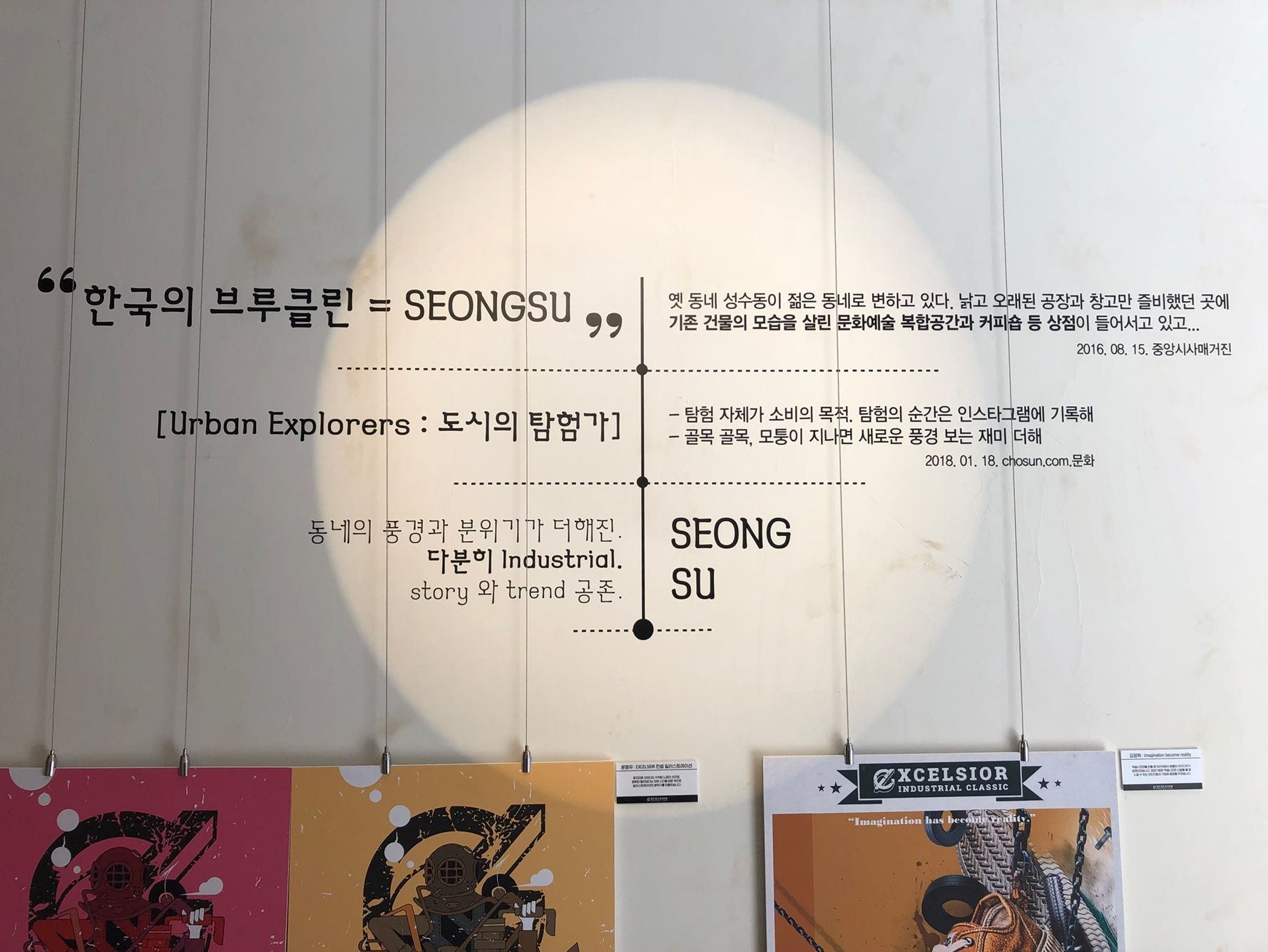 엑셀시오르 매장이 있는 성수동의 설명이 있습니다. 엑셀시오르 매장을 성수동에 만든 이유를 보여주는 것 같습니다. 성수동이 요즘 좀 핫해서, 라는 뜻도 있지만 공장과 창고들이 많았던 곳임을 보여줌으로 엑셀시오르의 감성을 전달하고 있습니다. 이 사실은 글을 쓰면서 알게 되었네요.