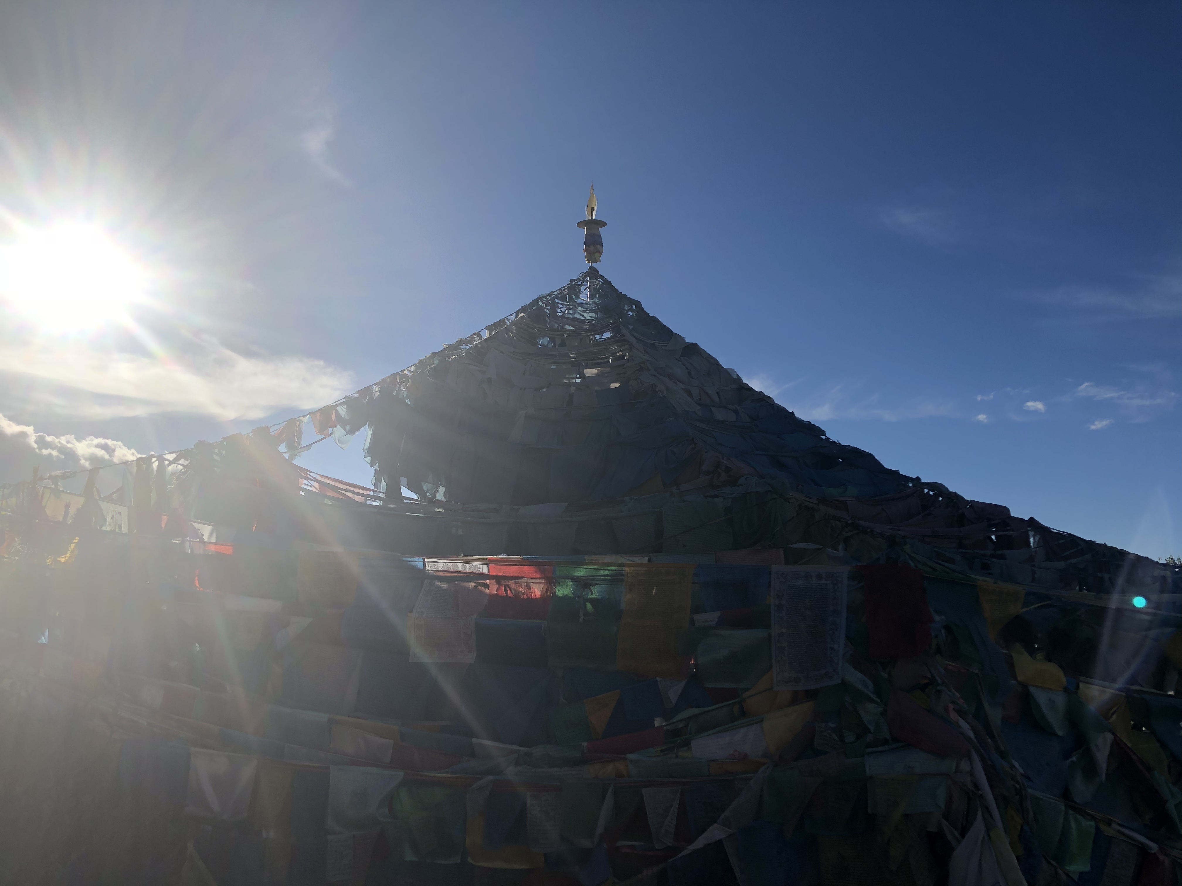 이 안에 들어가 쉬기도 한다고 해서, 그 안으로 들어갔습니다. 바람에 타르초에 적인 경전이 날립니다. 그 가운데 눈을 감고 마음챙김을 합니다.