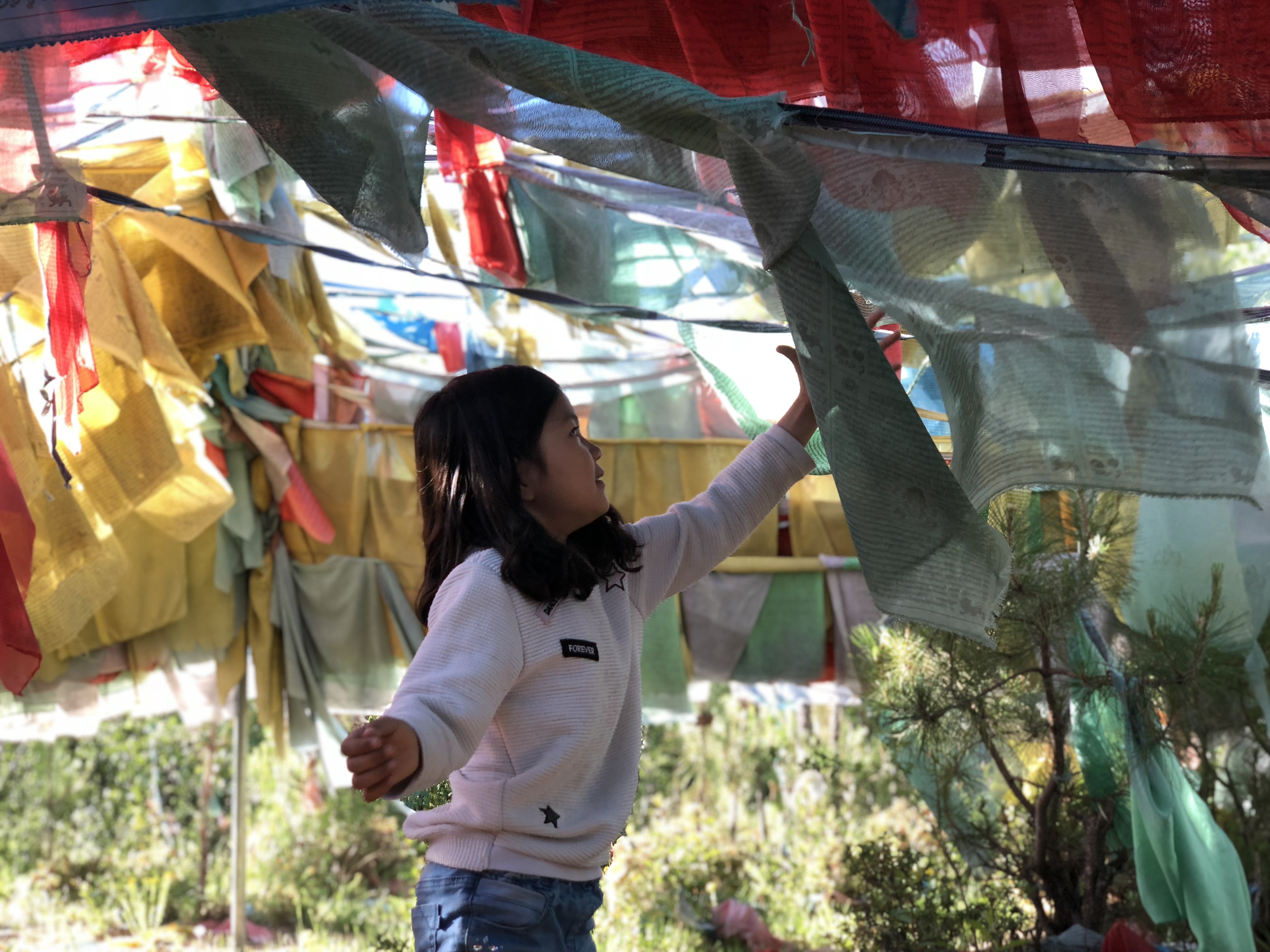 아이는 절로 춤을 춥니다. 짧은 마음챙김이었는데 어느새 횡경막이 편해집니다. 바람에 날리는 경전이 앞뒤로 왔다 갔다 합니다. 깊은 경험이었습니다.