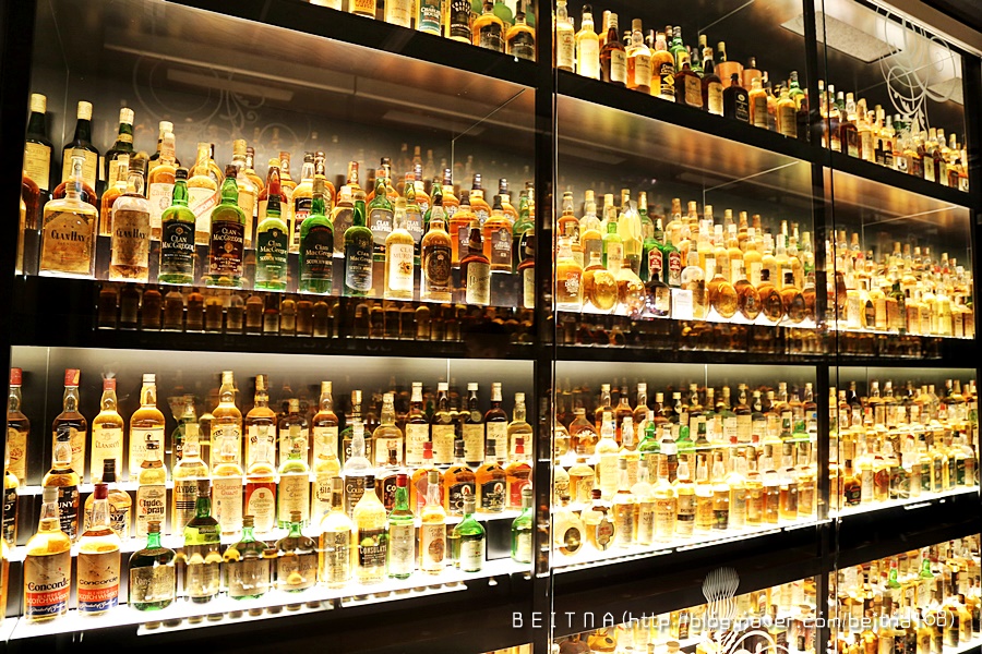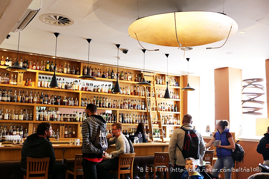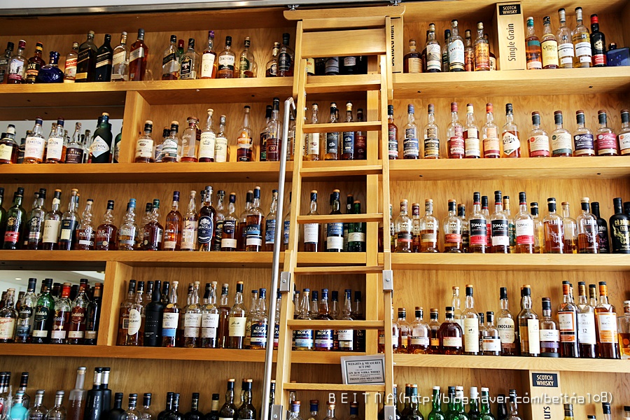 종류가 얼마나 많으냐 하면 위 칸에 위스키를 집어오려면 사다리를 타야 하는 정도...