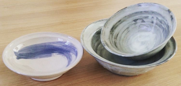 일주일에 한번 수업을 가는 탓에, 첫주에 가서는 물레를 차서 그릇을 만들고, 그 다음주에 어느 정도 마른 그릇의 굽을 정리하는 작업을 했다. 그리고 한주 뒤 초벌에 들어간 그릇을 받아 사포질하고 유약을 발라 한번 더 가마에 들어가면, 그 다음주에 공방에 가서 완성된 그릇을 받아올 수 있었다. 그렇게 근 한달에 걸려 만들어지는 그릇들에 애정이 안생길수가 없는데, 대부분은 국그릇에 밥그릇, 국수그릇을 만들어댔다.