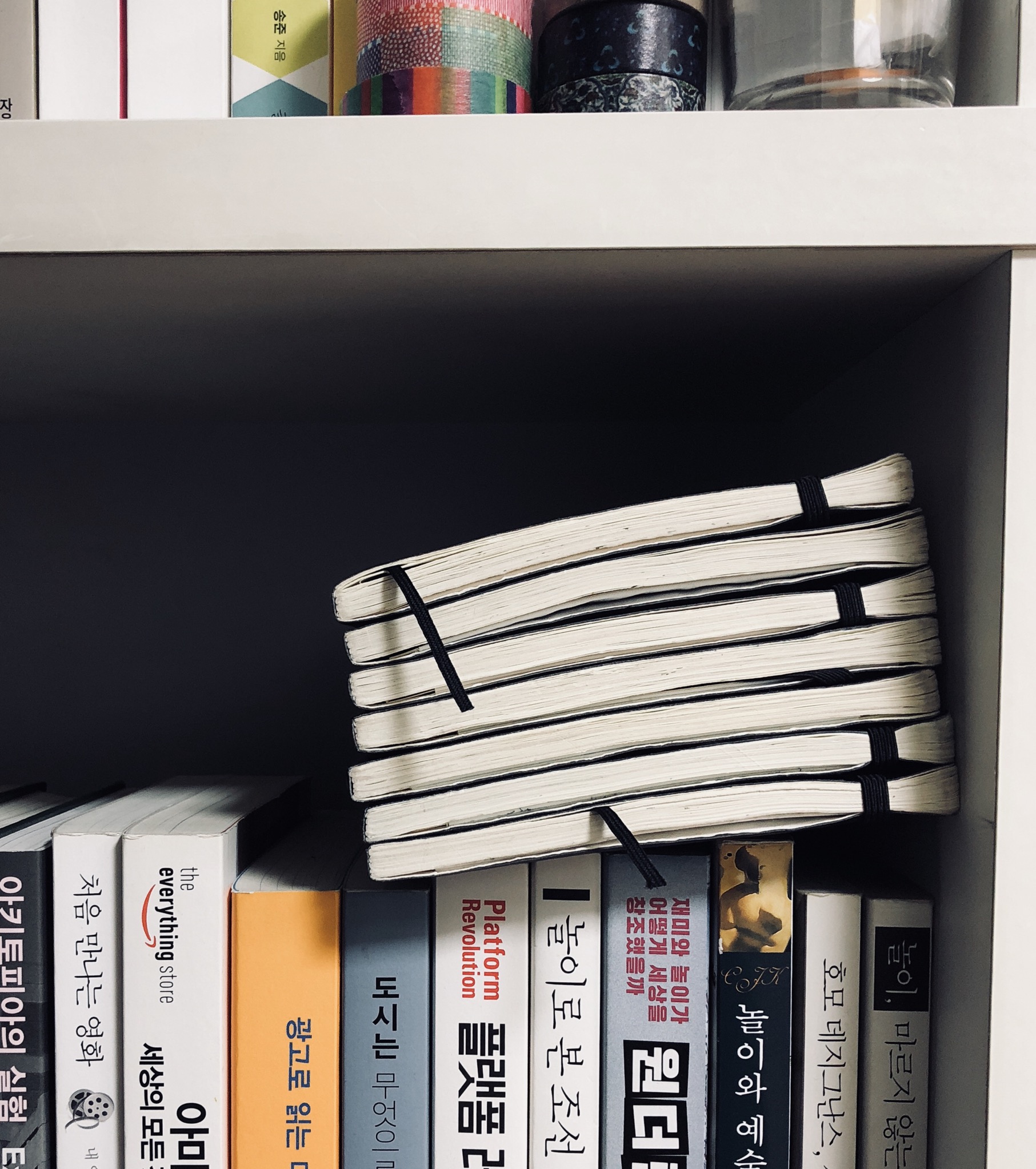 내가 가진 다수의 것들 중 가장 마음을 쓰고 옆에 둔게 뭘까 생각했다. 집을 쭉 둘러보니, 노트다. 지금 쓰는 것까지 하니까 20권 남짓 하다.