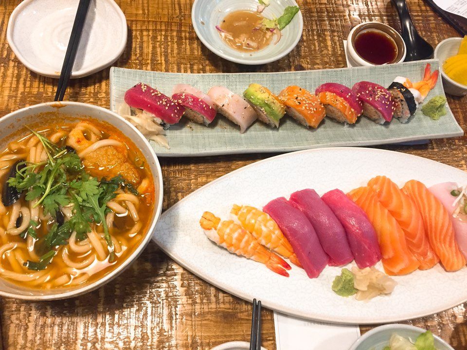 롤이 나오고 거의 동시에, 스시와 김치나베우동이 나왔습니다.