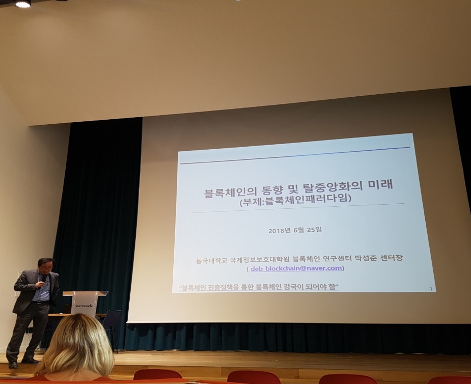 첫 번째 발표로는 동국대 블록체인 연구실의 박성준 교수님