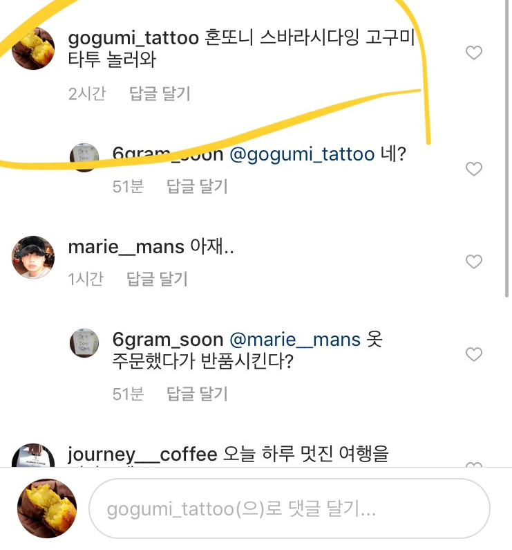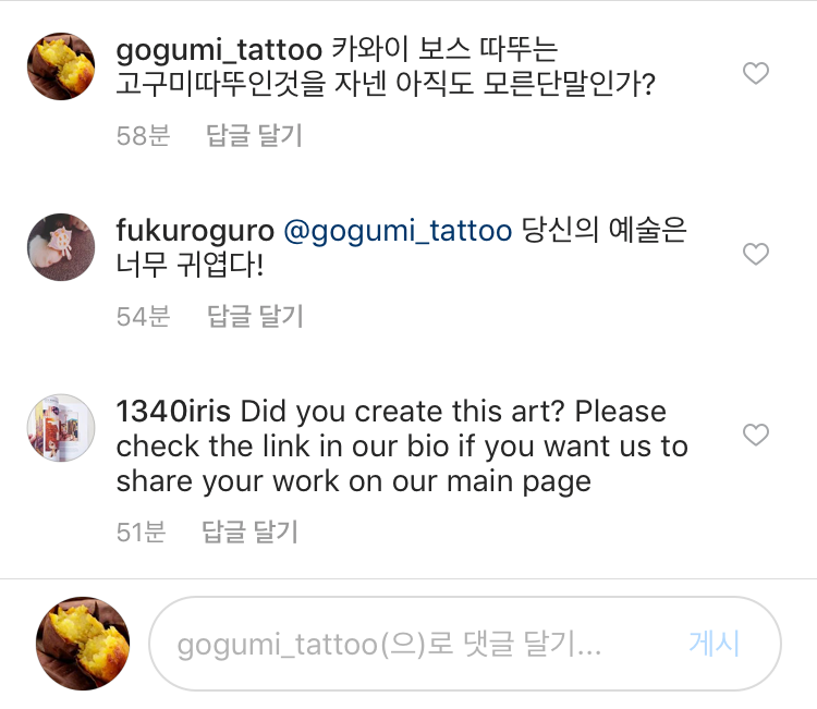 저는 몇일전 인스타그램 고구미 타투 를 활성화 위해