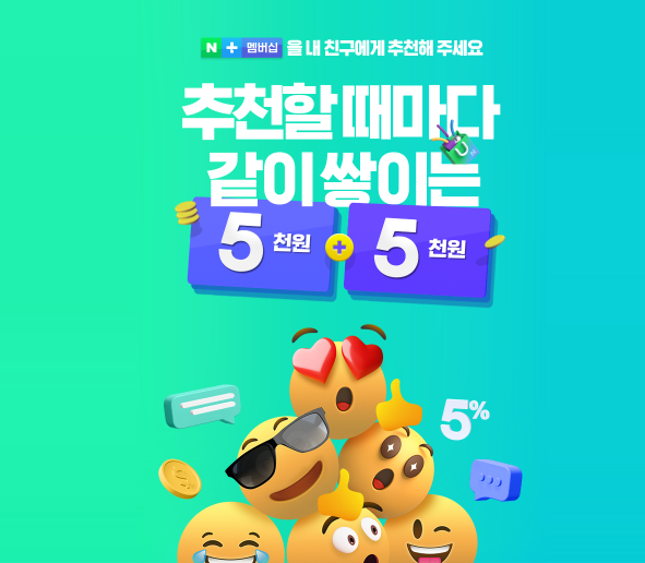 추천인 입력후, 네이버 플러스 멤버쉽 신규가입시 5천원을 즉시 지급합니다.