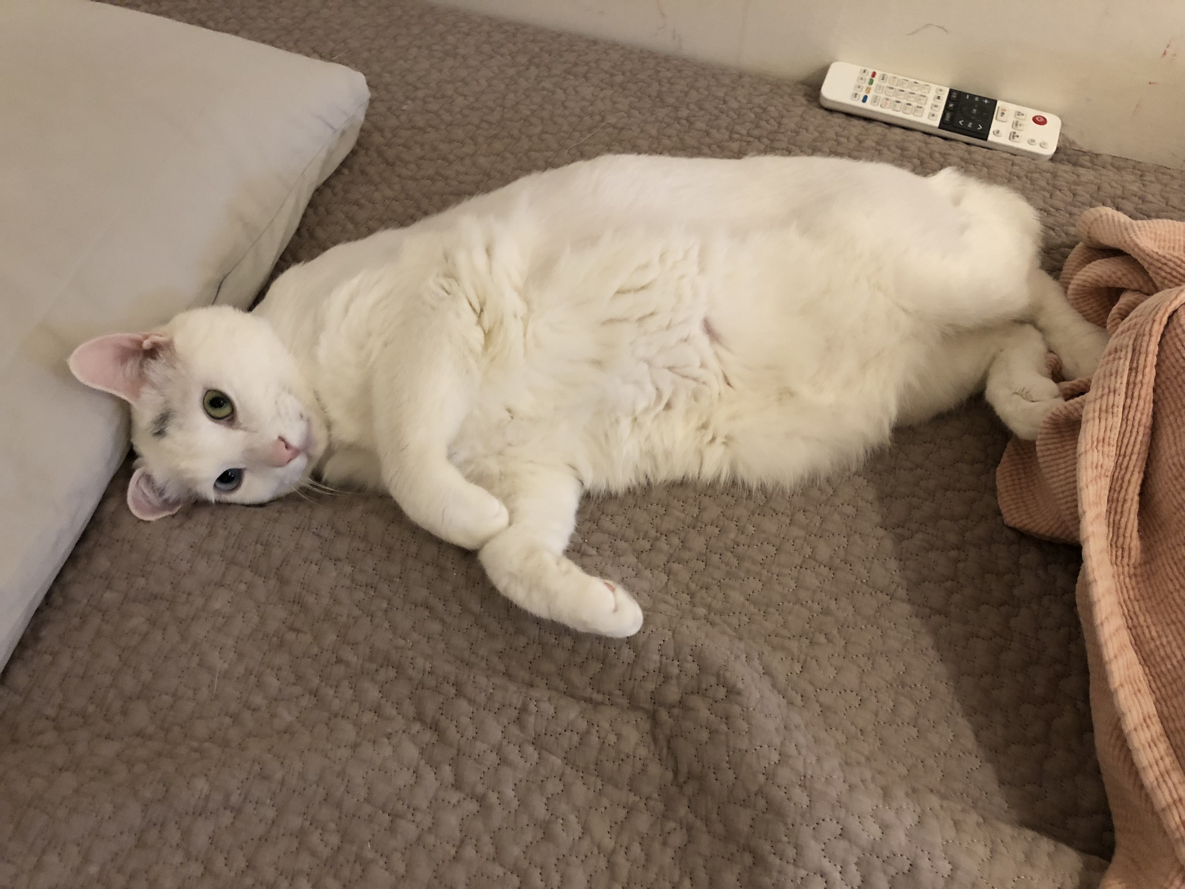 마마보이 흰냥이 쌀이는 항상 엄마한테 붙어있고 싶어해서, 심지어 낮에도 낮잠 재워달라고 잠투정을 부립니다. 고양이가 맞는지 의문이에요.