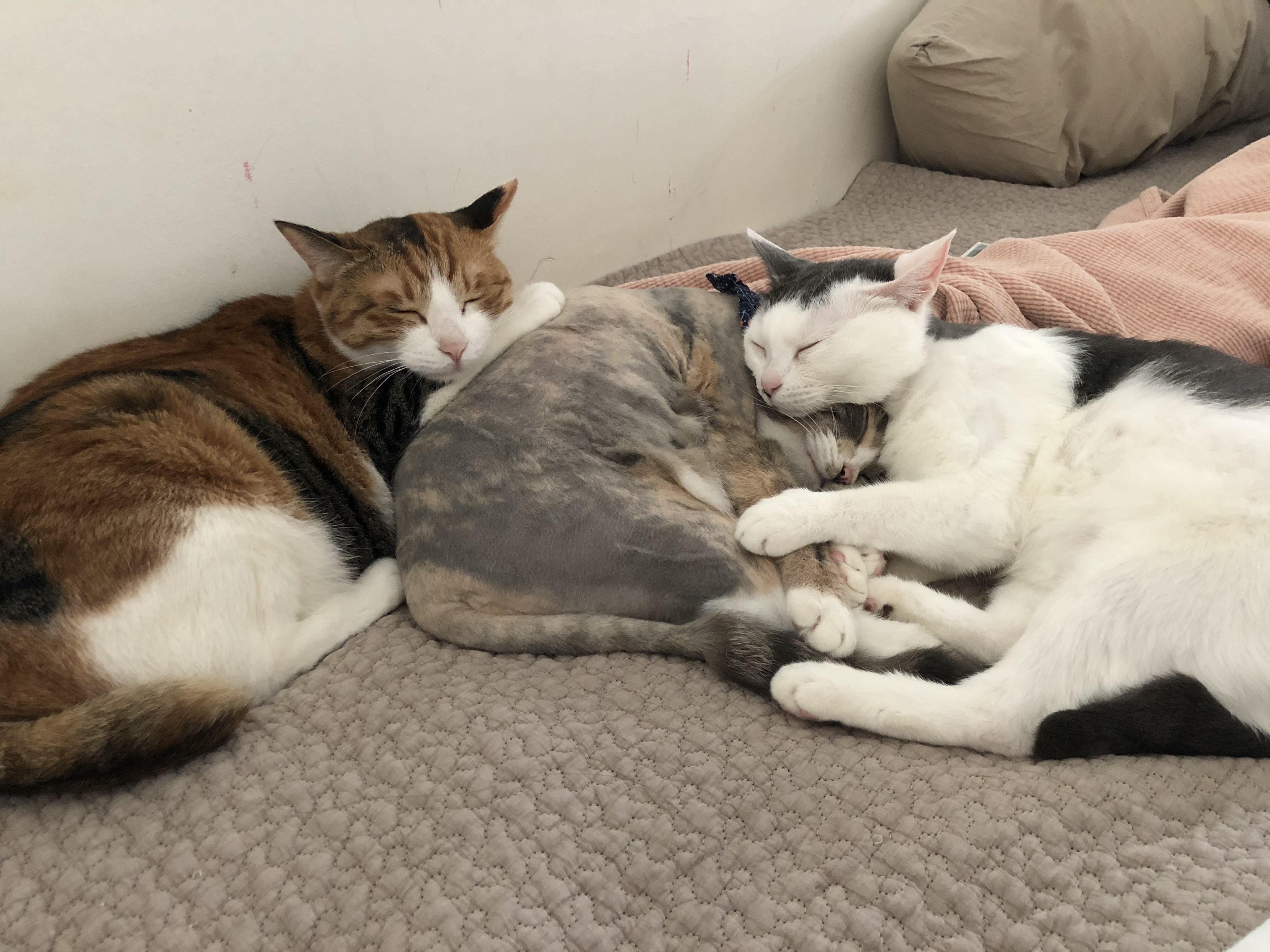 고양이 딸들 세마리는 자주 이렇게 붙어있습니다.