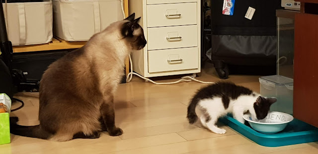 사실 우리 애들은 엄마냥 빼고는 다른 아이들을 막 그루밍하려고 들고 그런 적이 없어서...이런 일이 없었거든요. 키키도 표현 방식이 좀 서툰 것 같긴 해요. 둘이 떨어져 있으면서 서로 더 좋아져야 할텐데 말이죠.