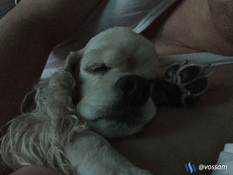 위 사진은 윔크가 자는 제일 흔한 형태로 "아빠의 다리 사이에 껴서 자기"가 되겠습니다.