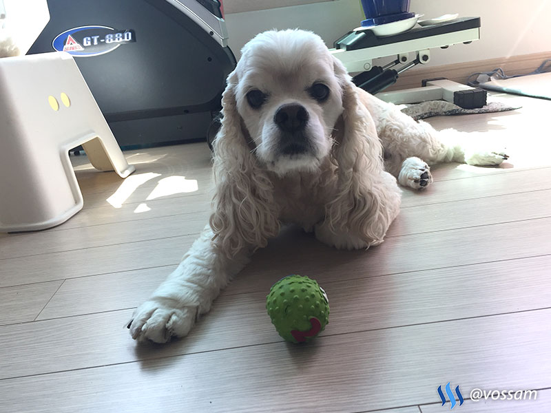 윔크의 최애 포즈~ "공을 던져라~" 입니다. 공을 자기 앞에 놓고 사람을 응시하거나 엎드려 있습니다. 그래도 반응이 없으면 공을 물고 사람 근처에 던져 놓습니다.