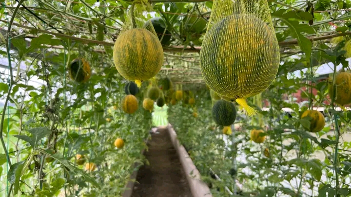Sebagian tanaman semangka yang ada di pekarangan rumah kabin Zeze Zahra ada yang sudah mendekati usia 2 bulan. Tanaman tersebut sudah mulai masuk usia panen.