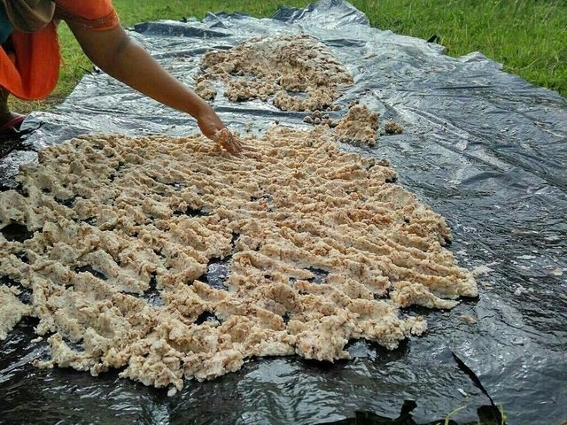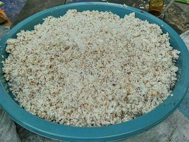 After that the coconuts have been measured, the contents of the coconut are put into a container and fermented for 3 days, then on the last day the drying process is carried out under the hot sun. after the drying process and it looks dry, the next step is the process of separating the oil from the dried coconut using a press to remove the oil and after all the oil comes out of the coconut, then the pliek u can be marketed.