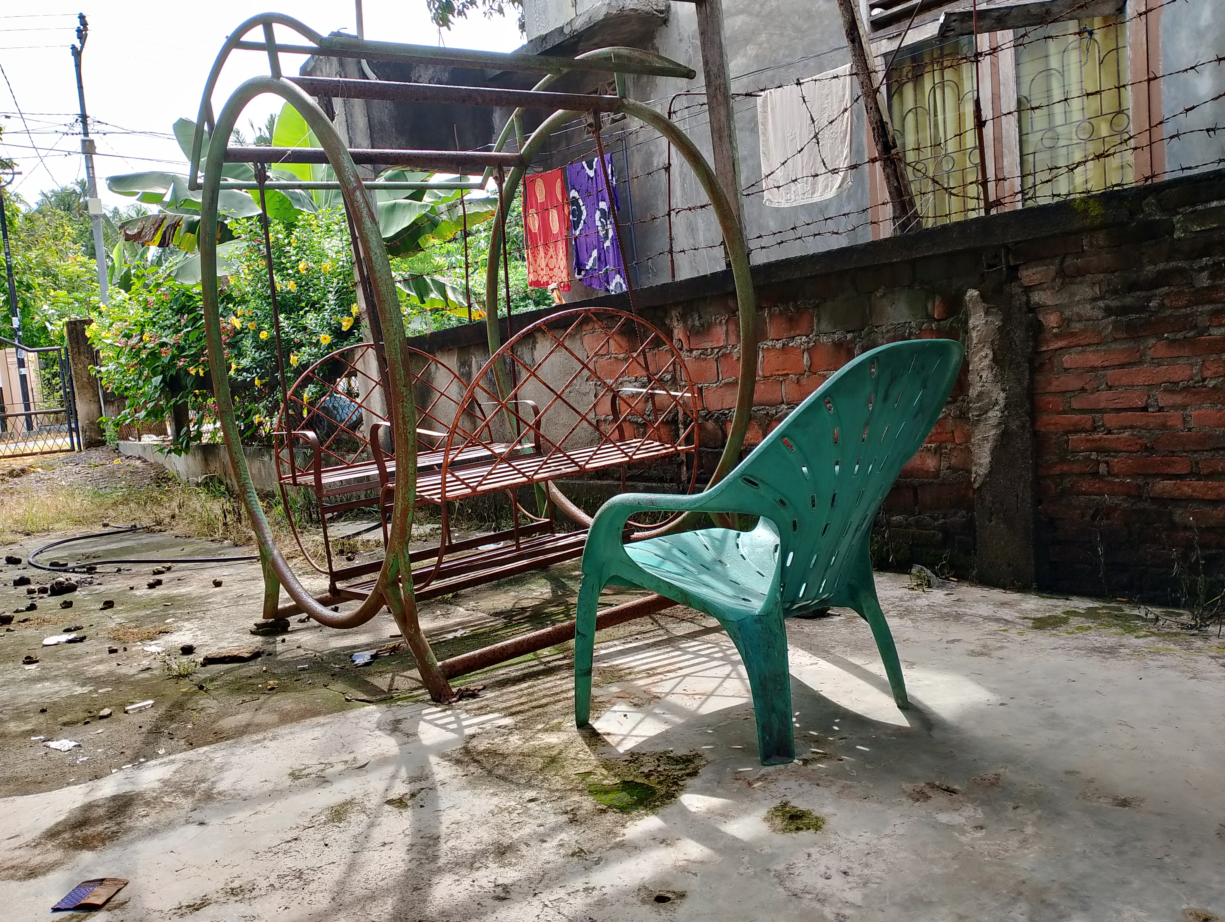 Bentuk kursi yang berdiri dan juga ayunan tua yang ada di depan rumah merupakan salah satu daya tarik sehingga saya mengabadikan gambar ini.