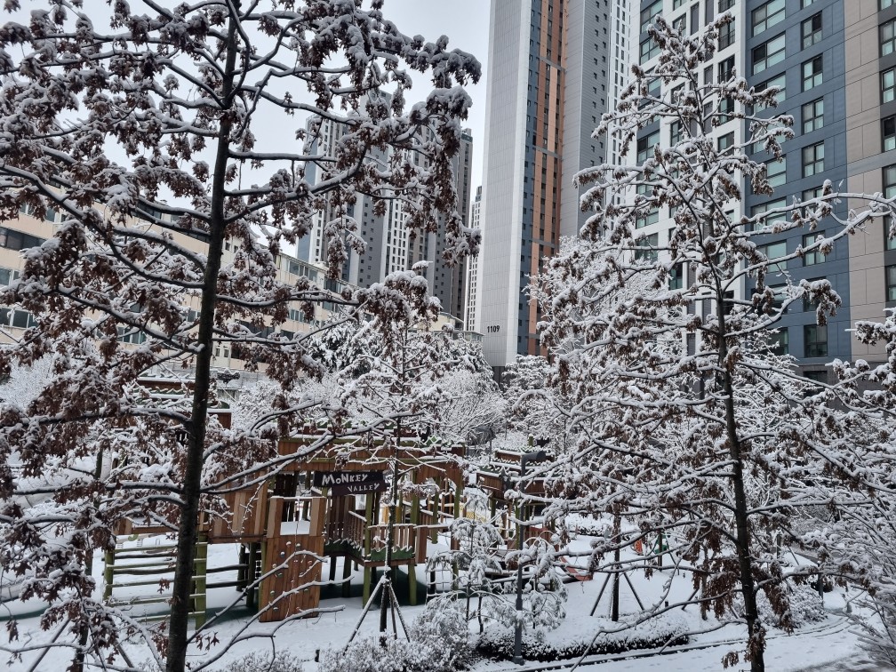 아침에 일어나니 온 세상이 하얗게 변했네요 ㅎ