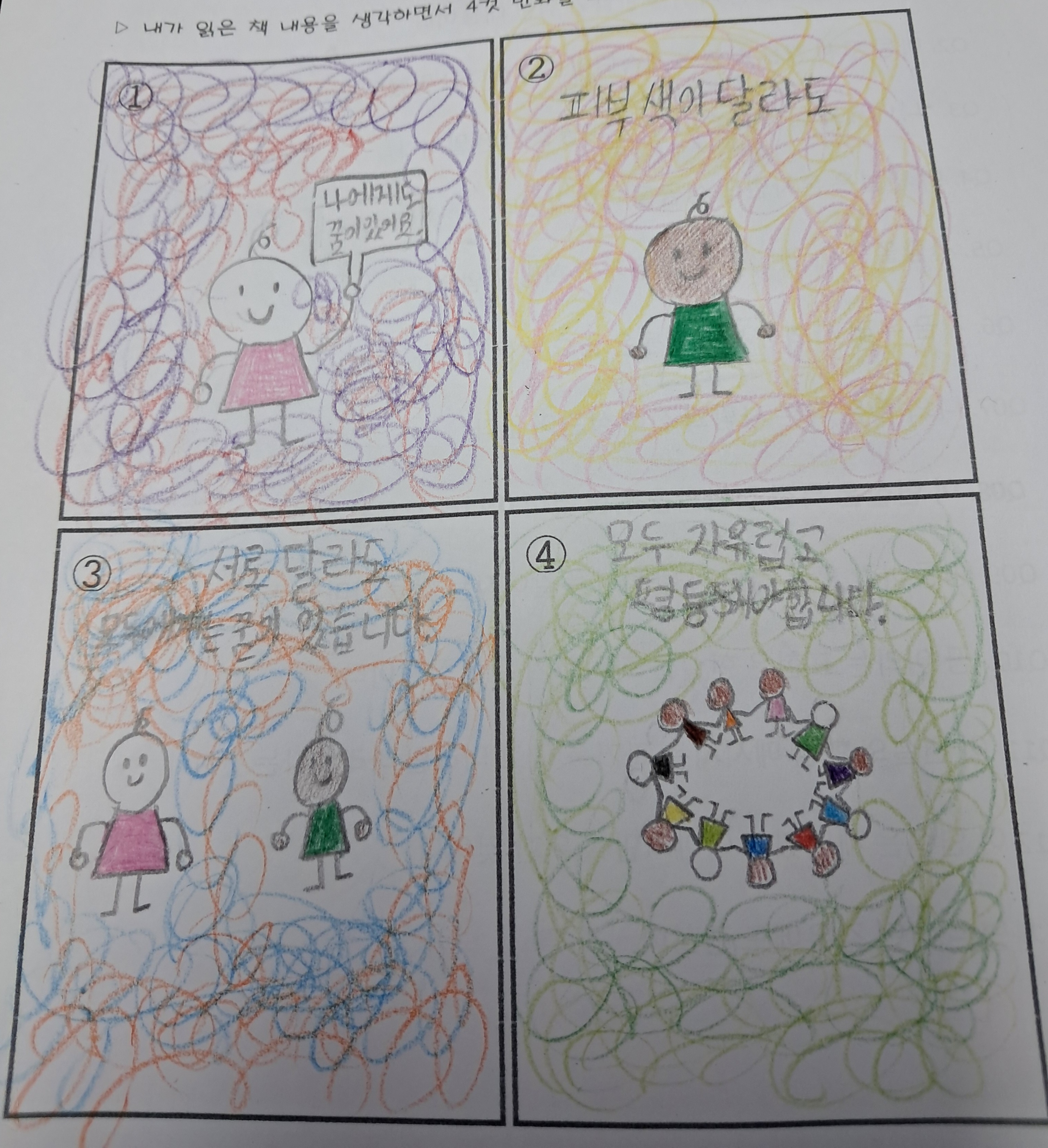 일주일 책을읽고 다양한 생각을 하게된다kiki0302 (57)in #krsuccess • 10 days ago (edited) 나에게도 꿈이 있습니다 마틴루서킹의 책을 아이들과 읽고 많은 이야기를 나누었다. 아이들이 책을 읽고는 슬프다 무섭다 억울하다 간접적인 분노를 표출한다. 자유와 평등이 있기까지 수많은 사람들의 희생이 있었다는것을ᆢ 한아이는 주먹을 불끈 쥐고 다 때려 부술거다며 흥분하기도 한다. 전쟁이 가득한 지금수많은 사람들의 자유가 이루어지길 모두다 행복한 웃음이 가득하기를 기도해본다. 아이들의 표현은 솔직하고 재미있다.