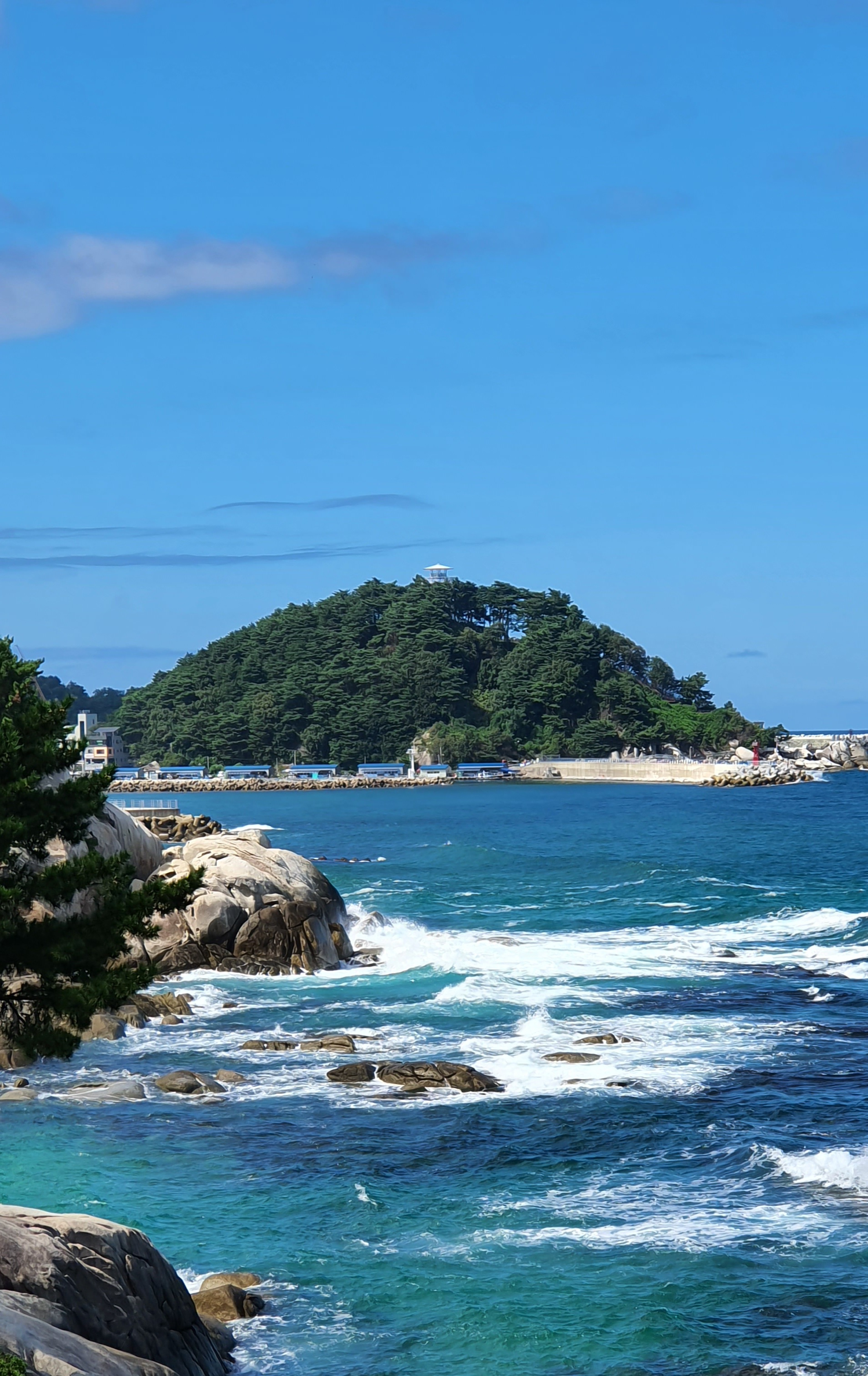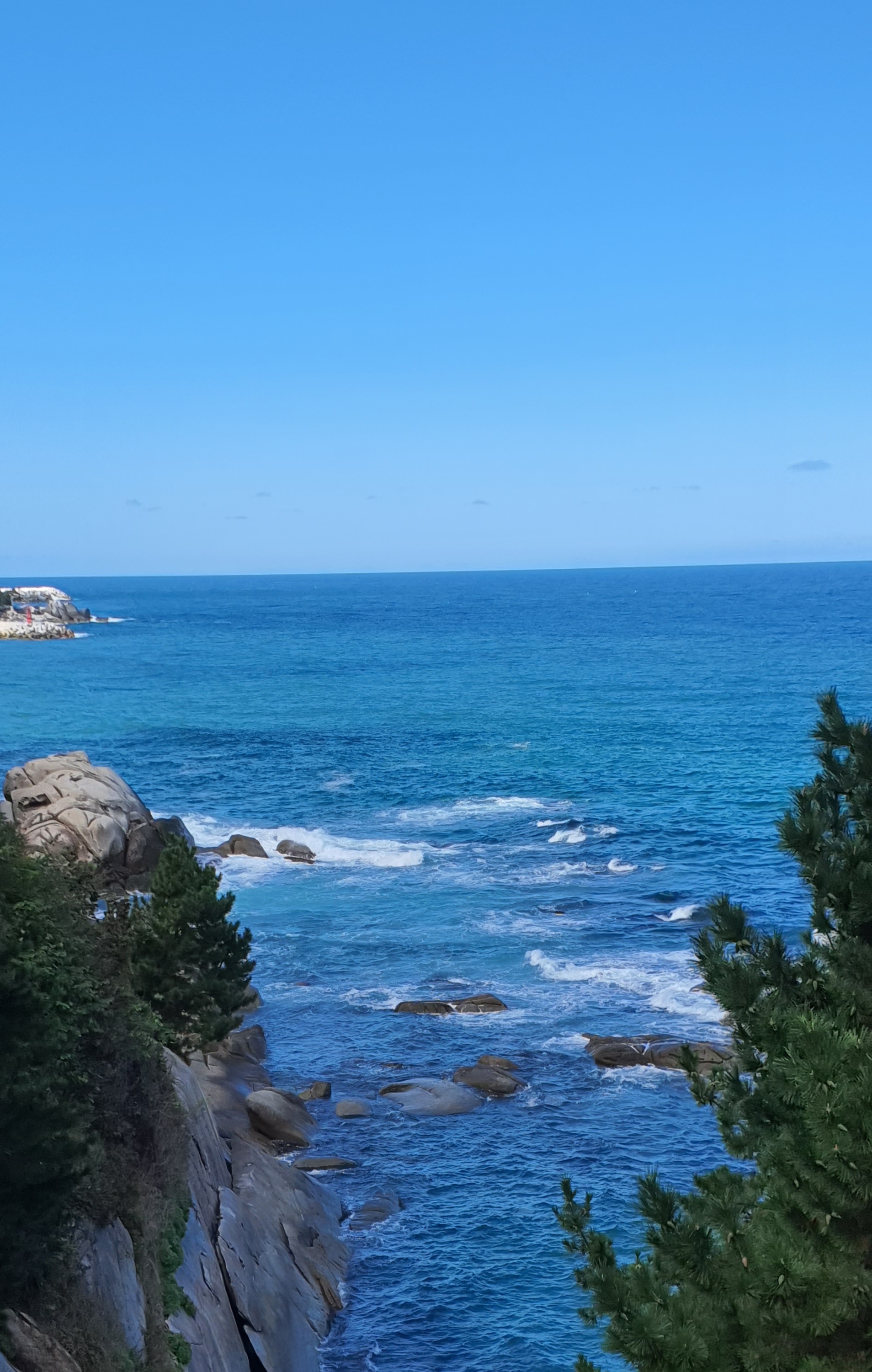 아래쪽 해변가 바위 쪽으로 가 보고 싶었는데 엄마가 계단을 부담스러워 하셔서 아쉽지만 다음 목적지인 하조대로 이동했습니다.