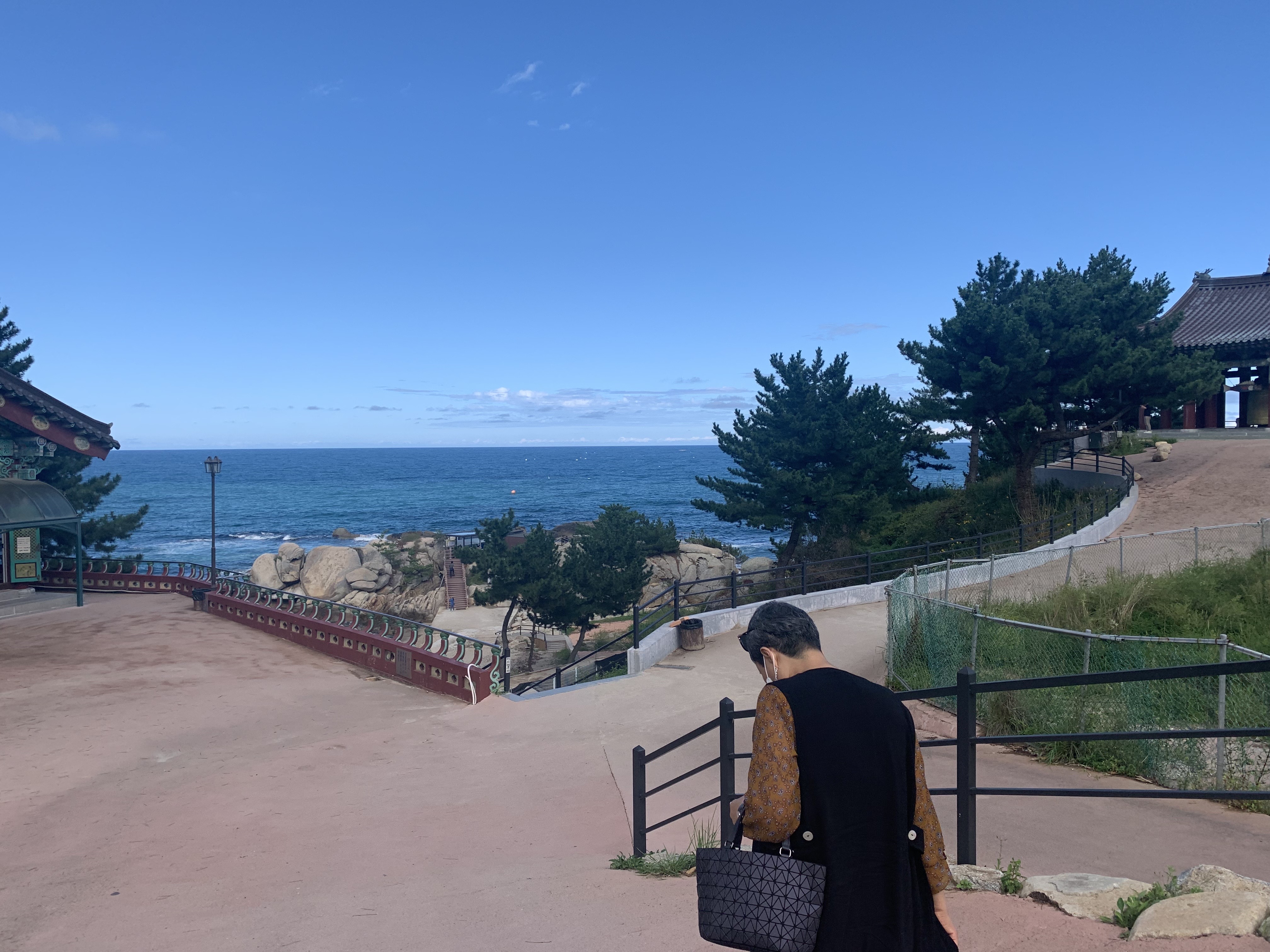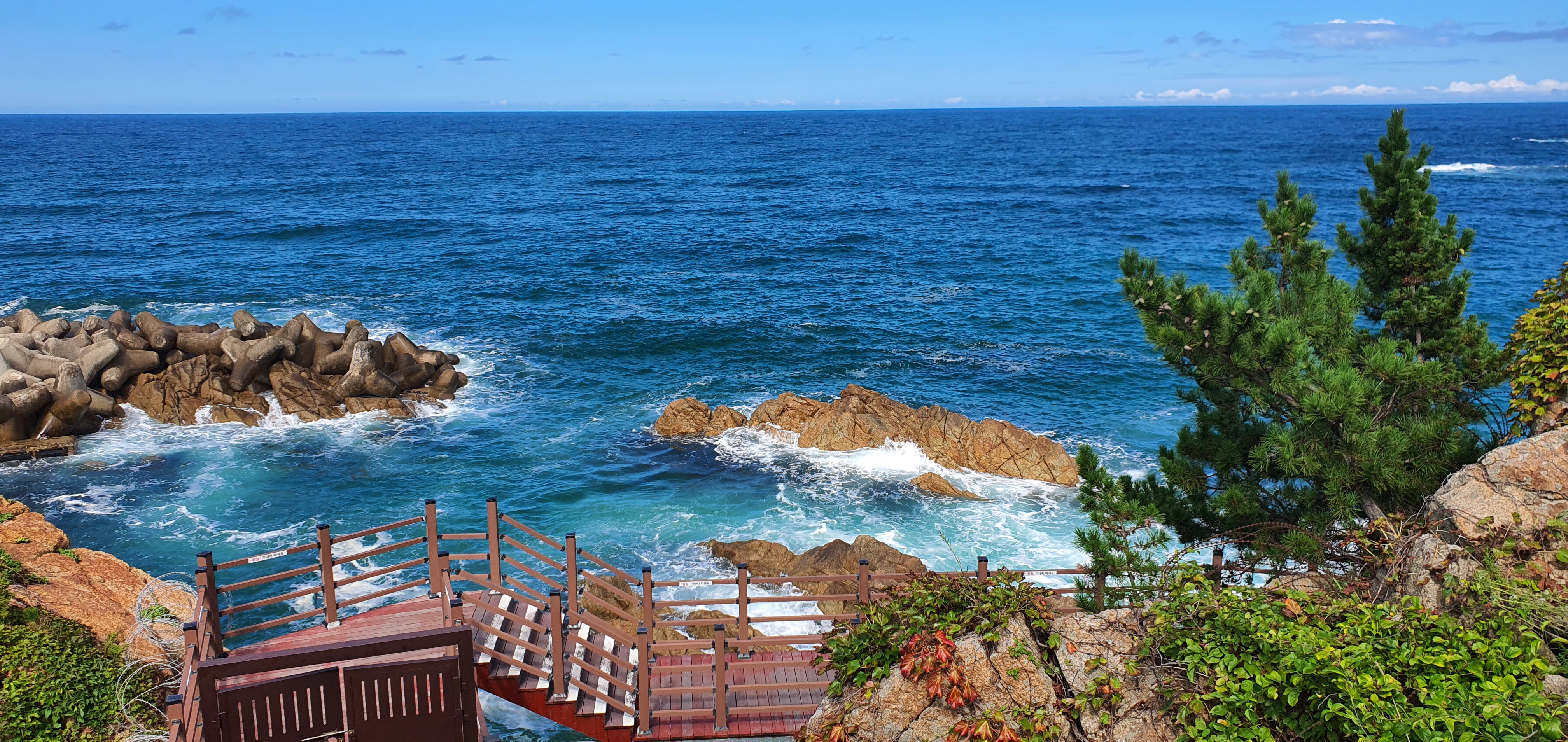 계단을 올라가는 길에 본 바다입니다.