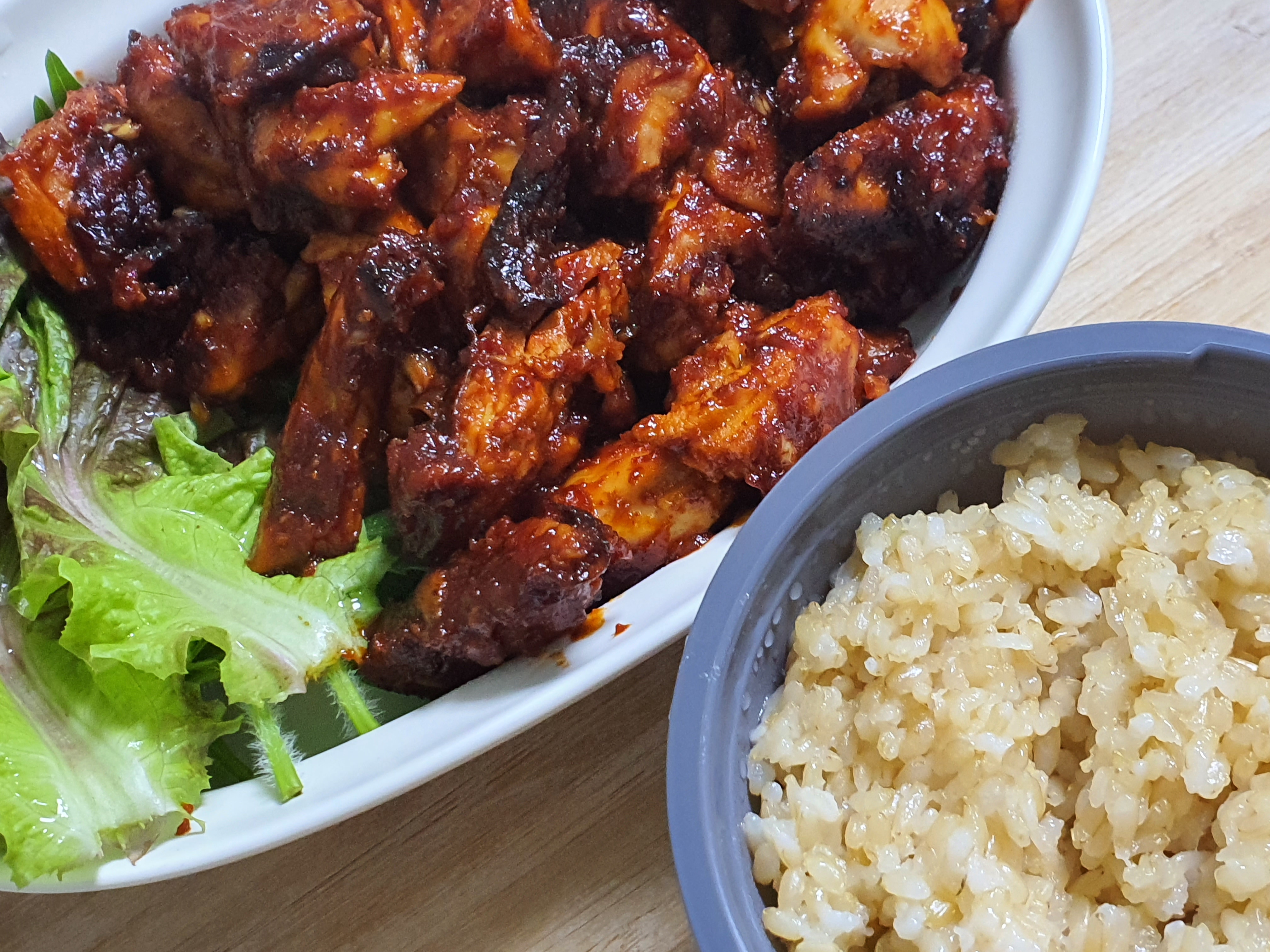 [20211023] 매운 닭불고기sunnyhee (53)in #krsuccess • 5 years ago 며칠 전 구워먹고 남은 닭다리살로 매운 닭불고기를 만들었습니다. 따라 한 레시피의 제목이 닭불고기..라고는 되어 있는데 닭갈비랑은 무슨 차이지..? 스럽기도 했어요. 사실 맛만 좋으면 불고기든 갈비든 무슨 상관이겠습니까😊 크으 때깔 좀 보세요😎 양념에 졸이기 전에 팬에서 좀 오래 구웠더니 좀 끄슬린 부분이 있지만 아주그냥 맵고짜고 자극적인 맛이었습니다. 가끔은 이런 맛도 좋은 것 같아요😊 #sct-kr #aaa #zzan #dblog #actnearn #kr-newbie