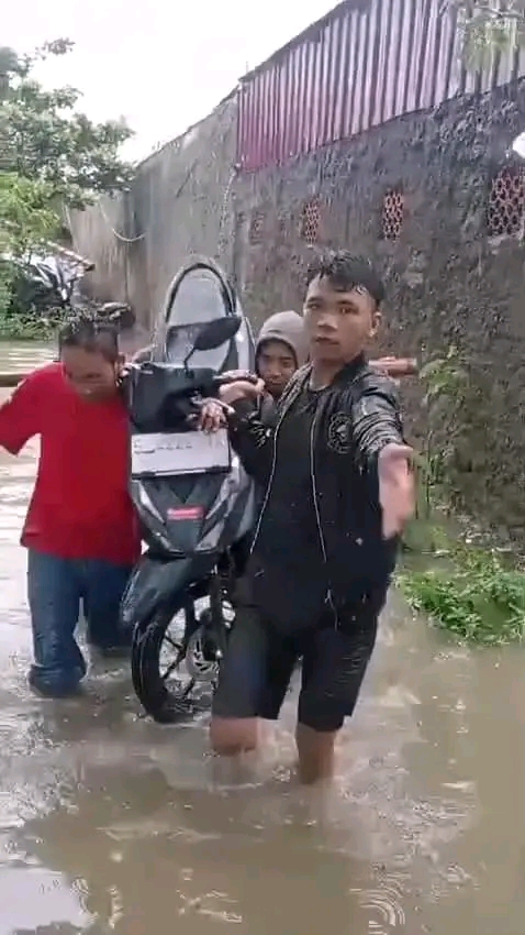 musim hujan dialami di daerah Indramayu, curah hujan yang lebat mengakibatkan debit air meninggi.