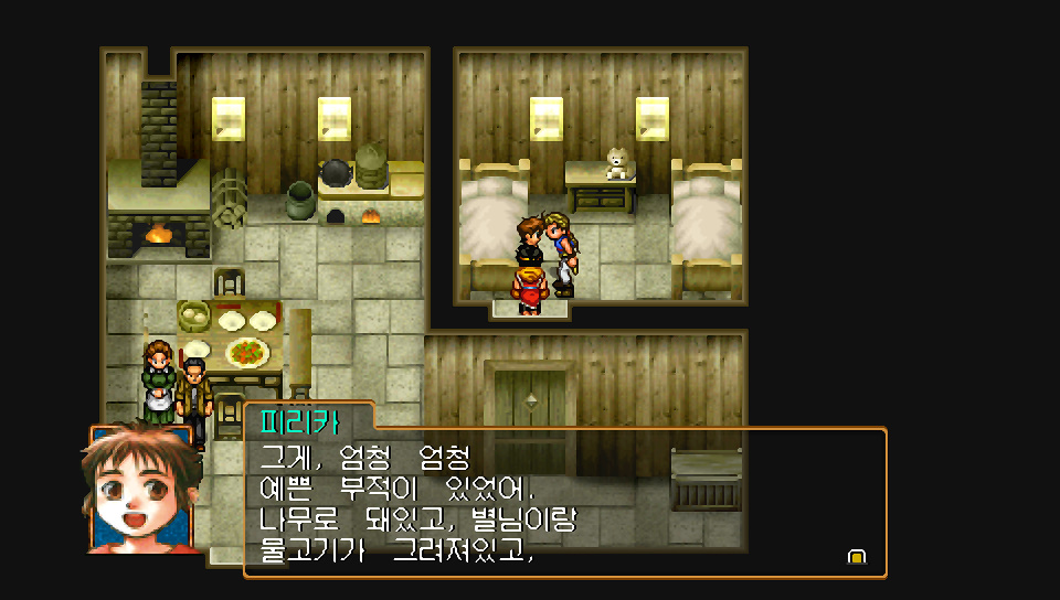 피리카 : 있지, 있지, 좀만 있으면, 아빠 생신이셔. 그래서 있지, 피리카가 있지, 아빠한테 선물을 해줄 거야. 그래서 있지, 뮤즈에 제일 큰 도구점에 갔을 때 있지, 그게, 엄청 엄청 예쁜 부적이 있었어. 나무로 돼있고, 별님이랑 물고기가 그려져있고, 아빠한테 사드리면 좋아하실까?