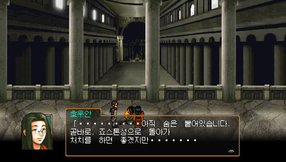 호우안 : ...아직 숨은 붙어있습니다. 곧바로, 죠스톤성으로 돌아가 처치를 하면 좋겠지만... 밖은 아직 적들이 많아서, 그럴수는...