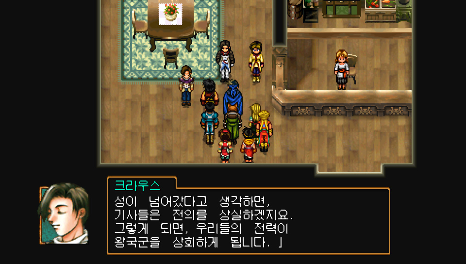 슈우 : 돌아갈 곳을 잃은 리드리공, 하우저공, 테레스공의 부대는 궤멸. 그것은 즉, 듀난군의 궤멸과도 같지. 리오우님, 모든건 당신에게 걸려있습니다. 록액스 성내로 돌입할 멤버를 정해주십시오.