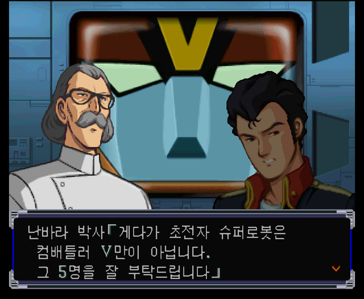 난바라 박사 : 걱정마시길. 이 기지에는 많은 전투장비가 있습니다. 게다가 초전자 슈퍼로봇은 컴배틀러V만이 아닙니다. 그 5명을 잘 부탁드립니다.