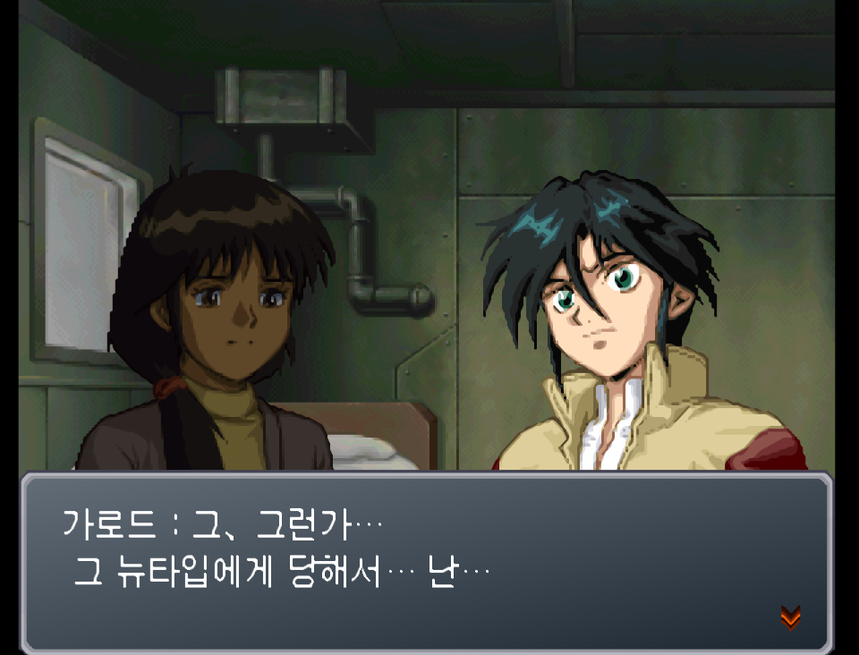 가로드 : ...티파가 납치됐어...! 그, 그리고 GX도 부숴졌다고...!? 제, 젠장! 내가... 그런 곳에서 당해버린 탓에...!! (힘이 필요해... 뉴타입과 싸울 힘이... 티파를 구해낼... 힘이...) 힘을 원해!!