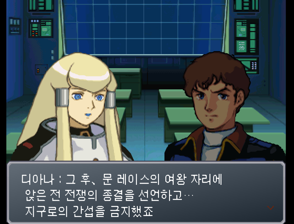 디아나 : 나의 친애하는 문 레이스의 사람들이여... 여러분을 불안하게 하는 사태가 계속되는 것을 진심으로 사과합니다. 모든 책임은 이 디아나에게 있습니다. 그러나, 그 비참한 태고의 역사에서 되살아난 인류가 우리들 문 레이스라는 것을 여러분들에게 알려주고 싶었던 겁니다. 그때문에, 흑역사의 데이터를 겐가남에도 흘린 것입니다.