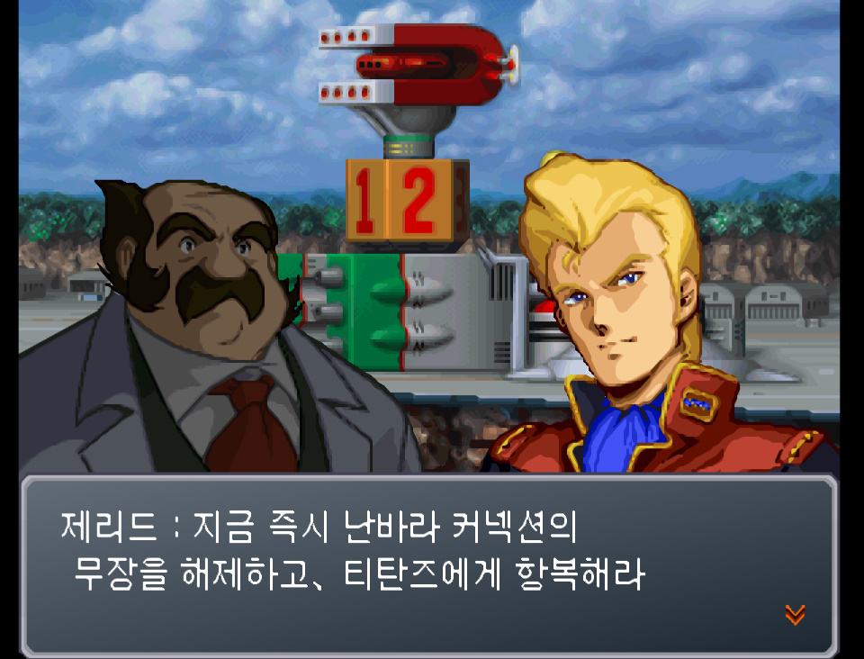 제리드 : 그렇기에 티탄즈가 이지스 계획을 발동시키려는 거다. 네놈들이나 SDF, 론드 벨대의 역할은 이제 끝났어.