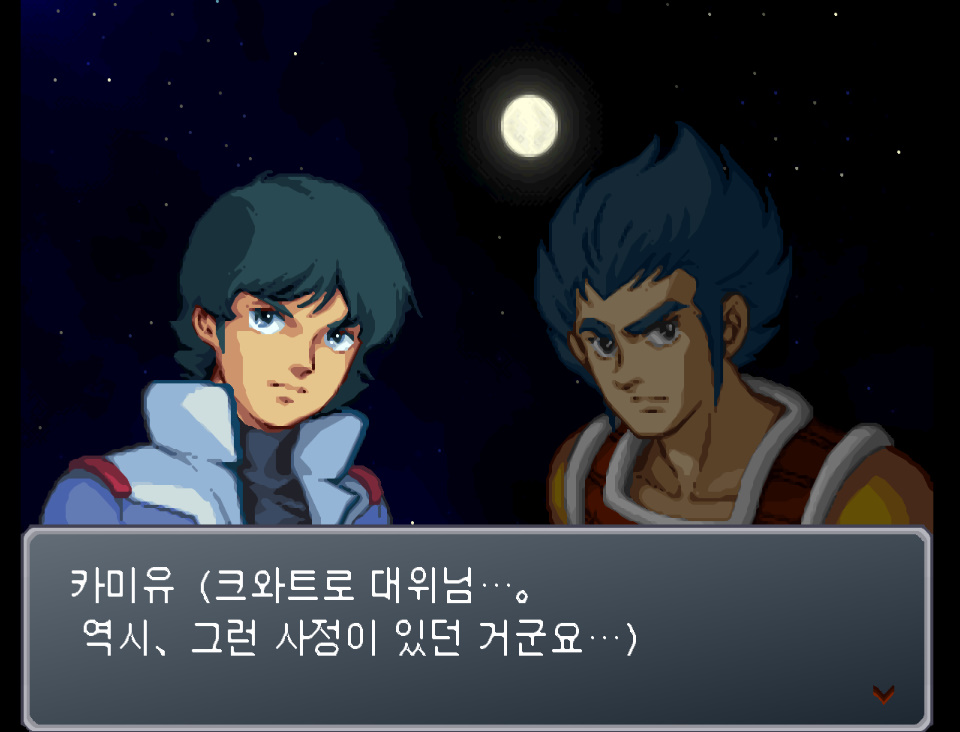 카미유 : (크와트로 대위님... 역시, 그런 사정이 있던 거군요...)