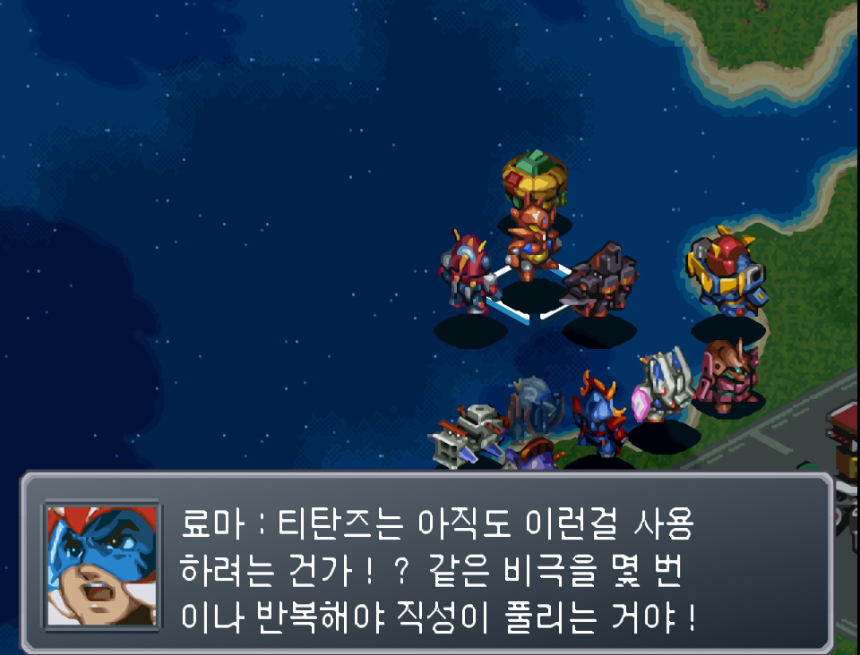 료마 : 티탄즈는 아직도 이런걸 사용하려는 건가!? 같은 비극을 몇 번이나 반복해야 직성이 풀리는 거야!