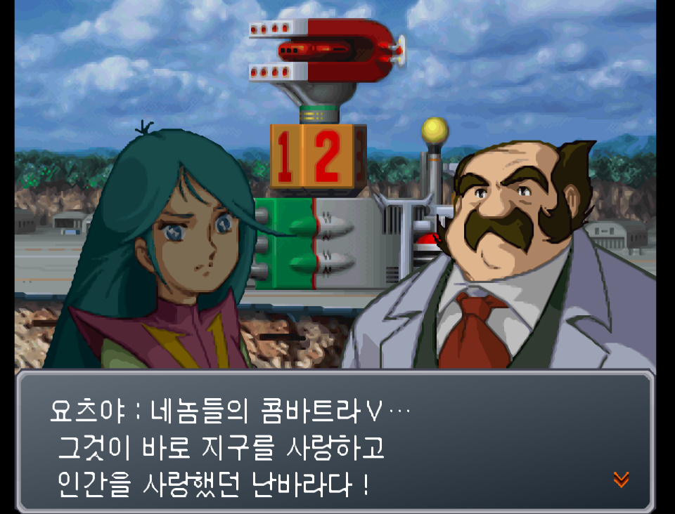 요츠야 : ...이 지구를... 이 아름다운 지구를 지금, 지킬 수 있는 건 너희들뿐이다. 일어서! 일어서라!! 그리고 봐라! 승리를 향한 V사인... 컴배틀러어어어... V!!!