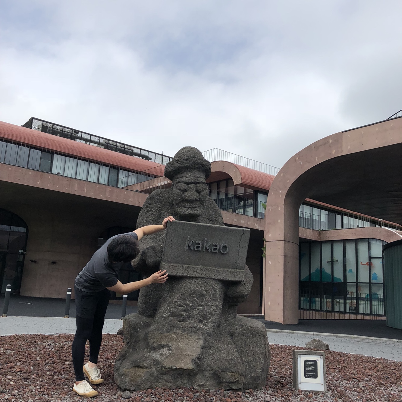 전기차 이야기랑 이어지는데요, 전기차 충전하러 주변 충전소를 찾아갔습니다. 충전하는 동안 화장실도 다녀오고 주변에 뭐있나 그냥 돌아보던 중, 멋진 건물이 있길래 멋지다고 생각했습니다. 알고보니 카카오본사더라고요. 정확히 말하면 다음카카오네요! 제주에 사옥을 만들었던 것이 꽤나 화제가 되었었는데, 제주도에 와서 카카오 본사를 본 것 자체가 저에겐 행복이었습니다. 그것도 우연히! 정말 평소에 가보고 싶다는 생각을 많이 했었거든요. 스타트업에서 일하고 있는 입장으로, 정말 흥미로웠습니다. 미리 견학 신청 등의 절차를 거치치 않은 상태였기 때문에 내부에 들어가보지는 못했습니다. 하지만 사옥을 한바퀴 도는 것으로도 정말 좋았습니다.