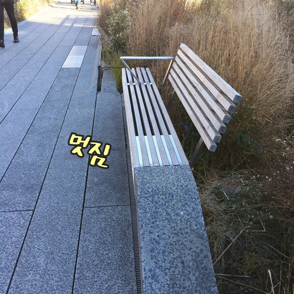 하이라인의 전경_방치되있던 시절 자연스럽게 우거졌던 수목을 최대한 살린거라고 하네요. 그리고 곳곳에 의자나 쉼터가 있습니다. 뉴욕답게 작은 것도 그냥 버리지 않고 스토리를 만들어 내는 남다른 디자인입니다. 예쁘네요. 서울고가도로에 그저 화분을 가져다 놓은듯한 것과 비교하면서 더 대단하게 느껴집니다.