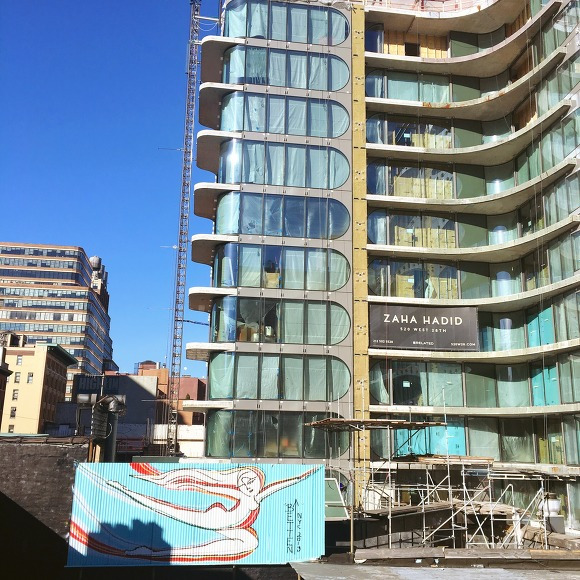 하이라인을 걷는 사람들의 시선을 사로잡는 그래피티와 조형물이 많이 있지만, 건물사이에 공간으로 보행자들의 시선을 최대한 확보하려는 뒤쪽건물의 노력과 디테일에 무릎이 탁 쳐지네요.