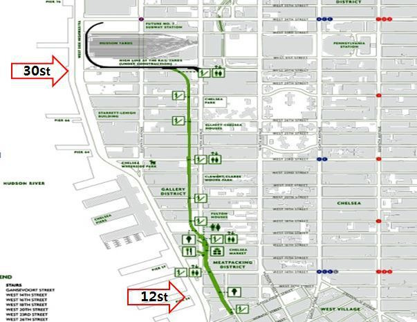 뉴욕시는 1847년 교통이 혼잡한 이일대에 (인명사고가 빈번했다고...) 뉴욕항으로 들어오는 물류운송을 위한 당시엔 획기적인 공중철도를 계획하고 건설합니다. 공중철도는 1980년 운영을 종료할때 까지 뉴욕의 물류운송의 한축을 담당했습니다. 하지만  운영종료 이후 20여 년간 방치되어 고가철도는 주변의 미관을 해치며 뉴욕의 대표 흉물로 등극, 악명을 떨치게됩니다.