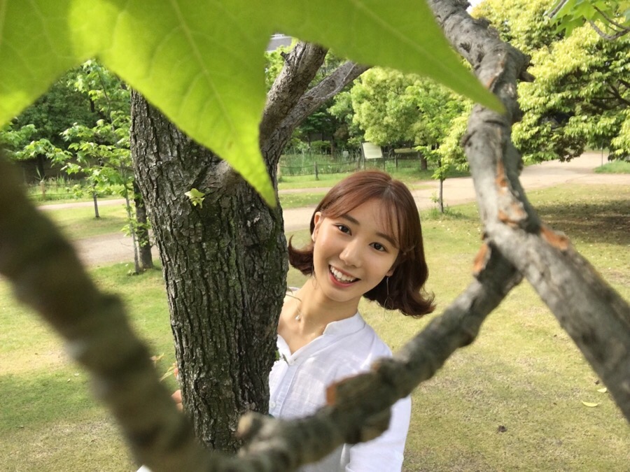 나뭇잎 사이로 찍힌 사진도 셀카로 찍은건가요?! 구도 잡는 센스가 있네요!