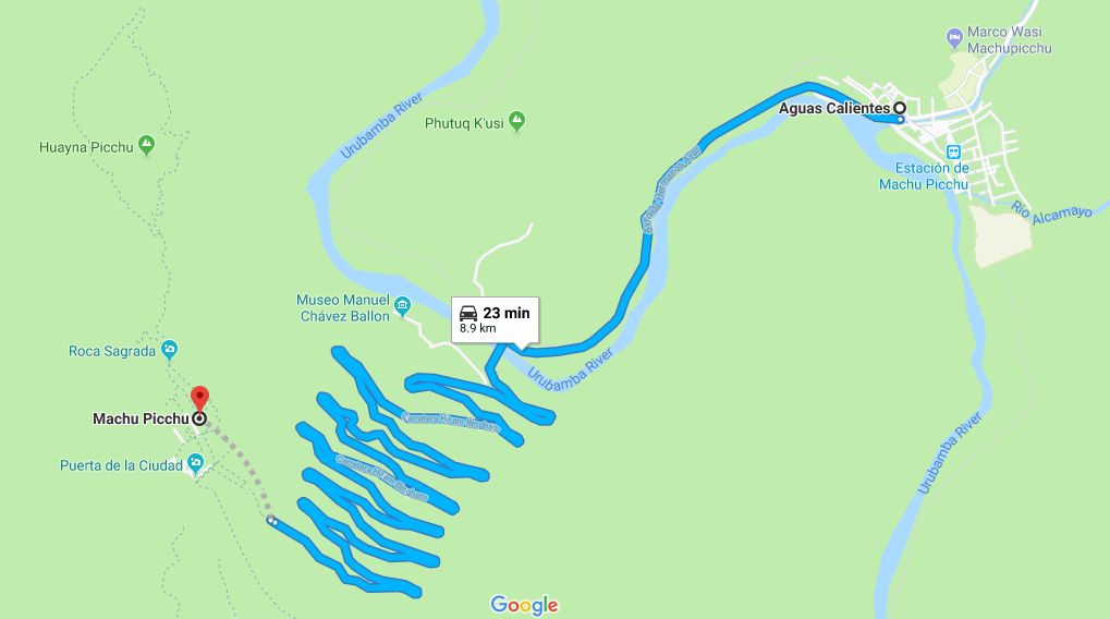 참고로 아래 지도를 보시면 마추픽추 오른쪽으로 갈 지(之)자 형태의 도로가 마추픽추로 가는 버스가 오르내리는 길입니다. 가파른 경사의 느낌이 지도만 봐도 전해지지요?
