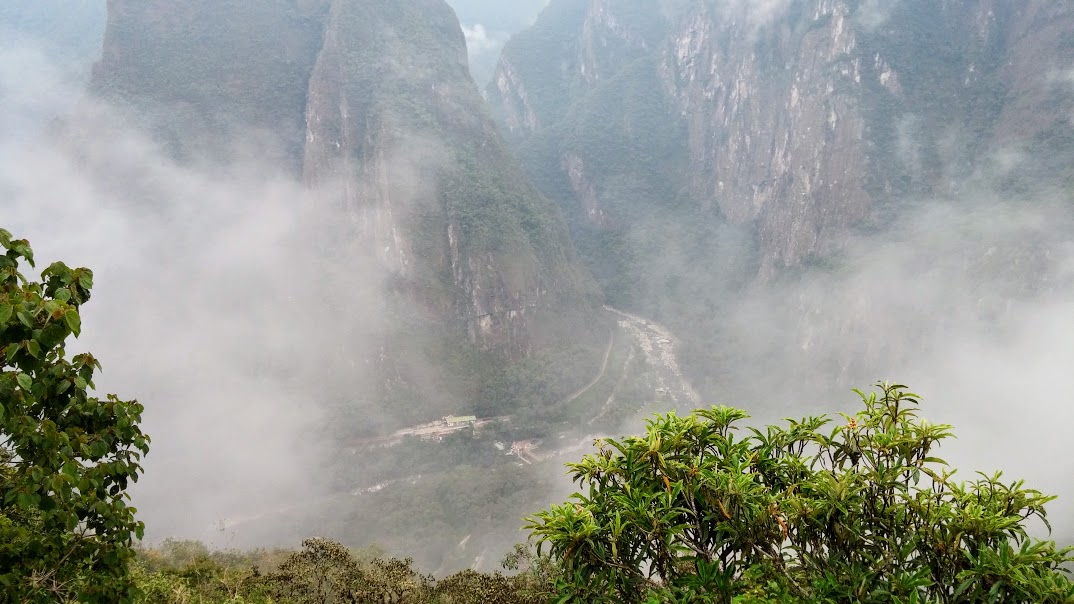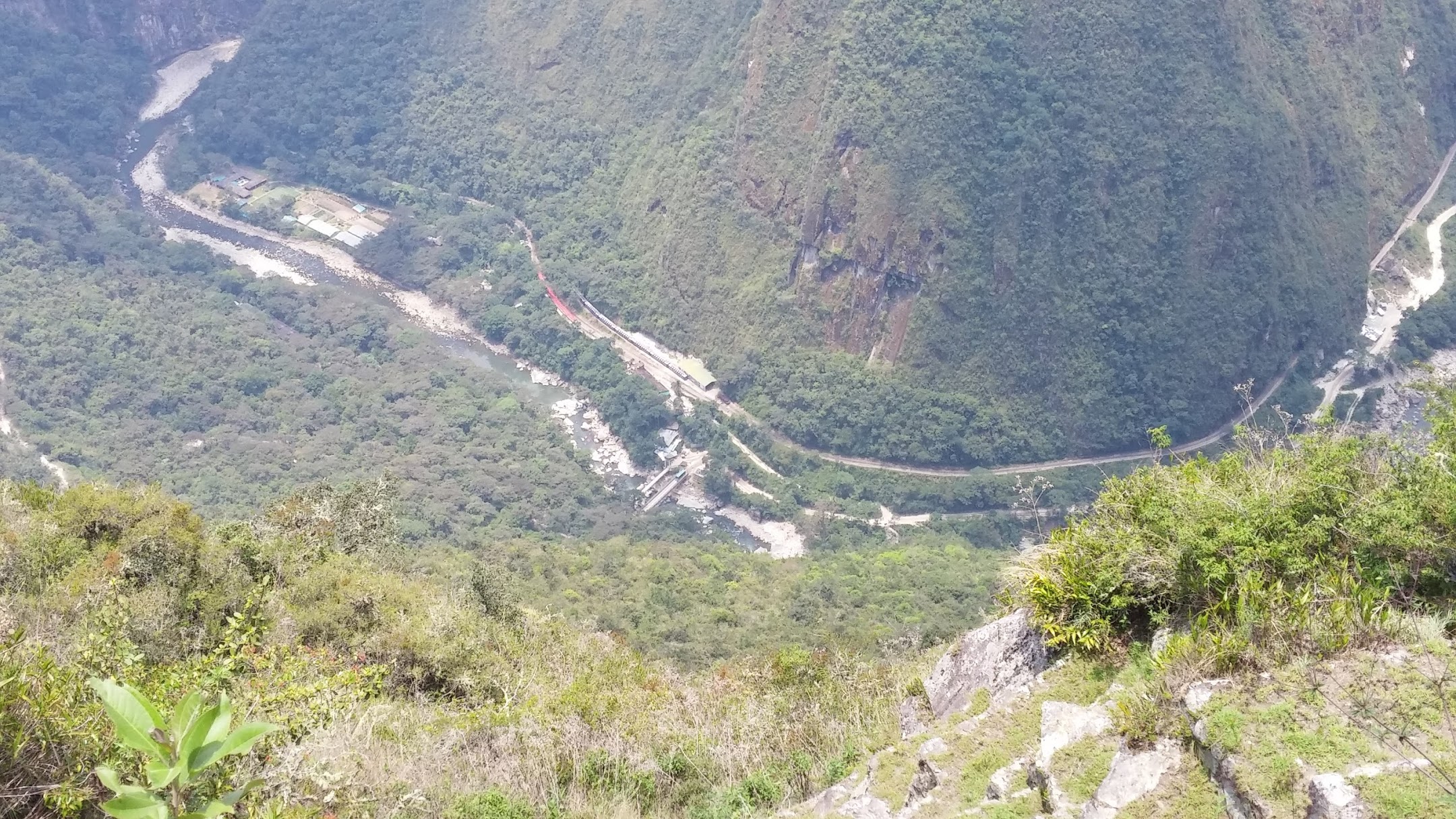 마추픽추에서 아래 아구아스 칼리엔테스를 내려다본 사진입니다. 우루밤바 강이 흐르고 그 가운데 기차역이 있음을 보실 수 있겠습니다.