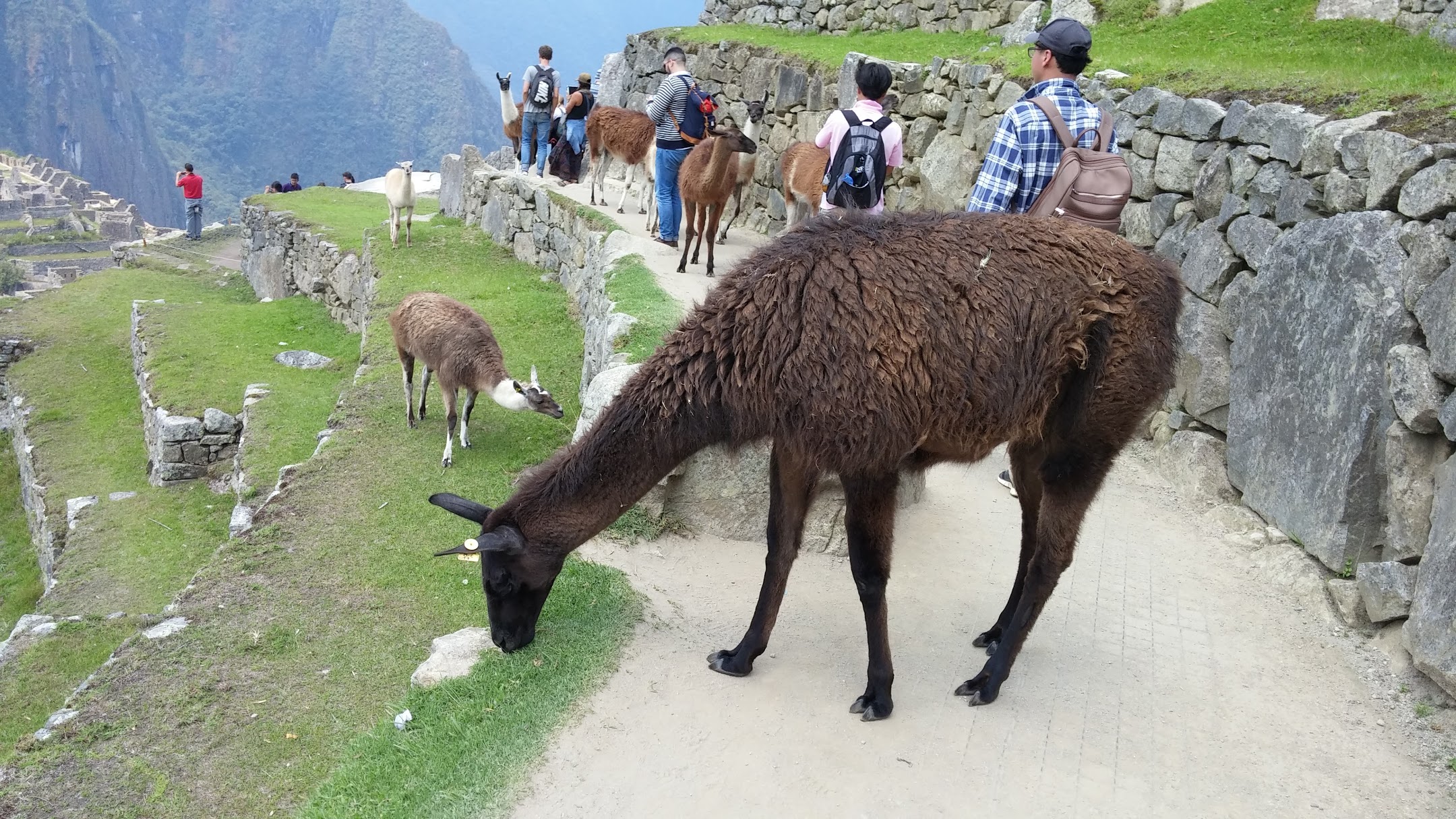 마추픽추에는 사람만 있는 것이 아닙니다. 아마도 관광용으로 풀어 놓은 것 같기는 한데요. 라마(llama)가 있습니다. 마추픽추 같이 좋은 곳에서 동물들과의 교감도 참 즐거운 일이었습니다. 여기 라마들은 전체적으로 순하고 사람의 손길을 무서워하지 않았습니다.