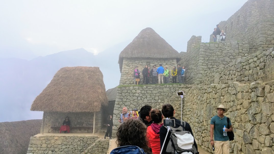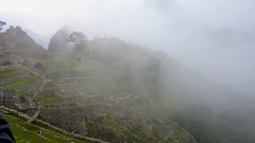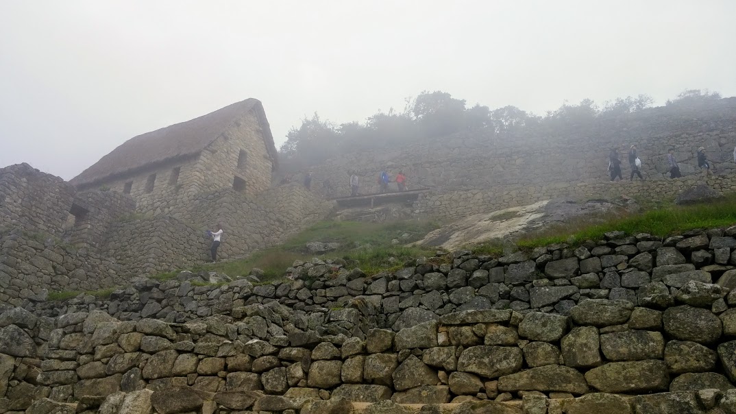 아재들은 간단한 검문검색 및 마추픽추 입장 예약 확인 절차를 거치고 드디어 마추픽추 입구를 통과했습니다. 다른 관광객들과 같이 걸어가기를 수 분여, 그러나 해뜨기 전 마추픽추는 여전히 안개에 자욱히 싸여 있었습니다. 전경이 잘 보이지 않을 정도로 짙은 안개였습니다.