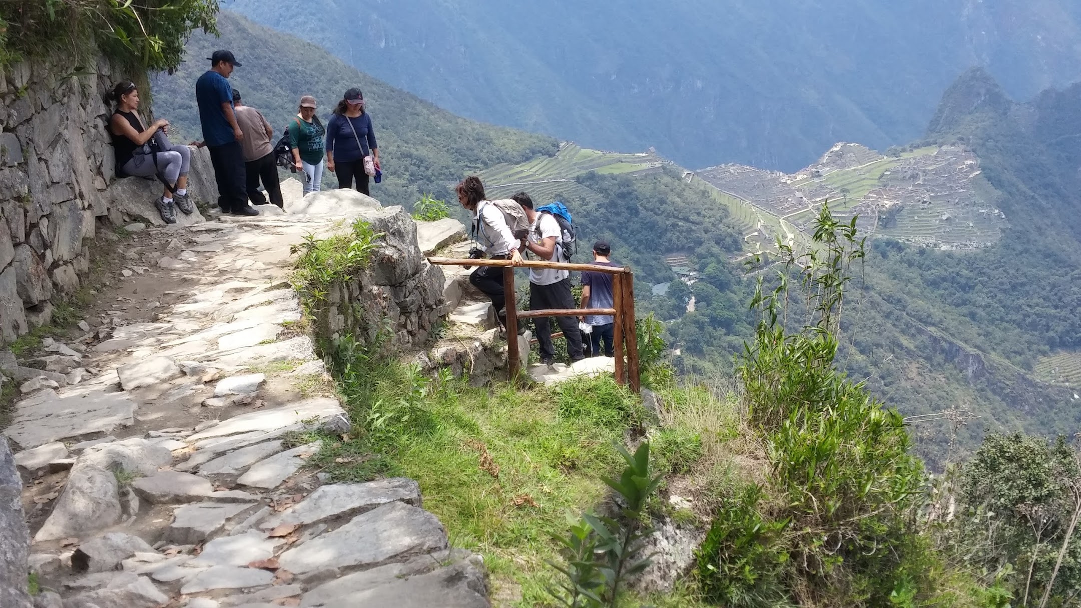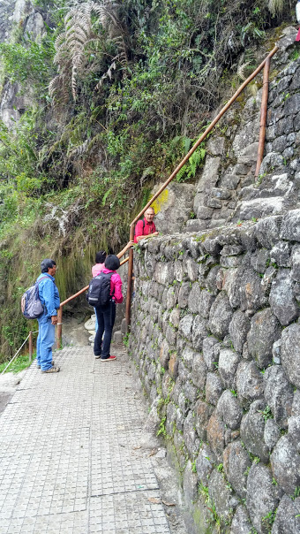 아재들은 이제 마추픽추를 거꾸로 가로질러 와이나픽추 반대편에 있는 산길도 올라가기 시작했습니다. 뭐랄까 이제 신이 난 느낌이었습니다. 다리는 무겁고 허벅지는 아팠지만 이곳의 경치와 분위기는 사람들에게 생동감을 불어넣는 특이한 무엇이 있는 것 같았습니다. 반대편까지 주욱 길을 올라가다보면 걸어서 마추픽추에 도달하면 만날 수 있는 잉카 트레일 입구가 나옵니다. 이곳에서 아재들은 잠시 휴식을 취하고 다시 발길을 돌려 마추픽추로 내려갔습니다.