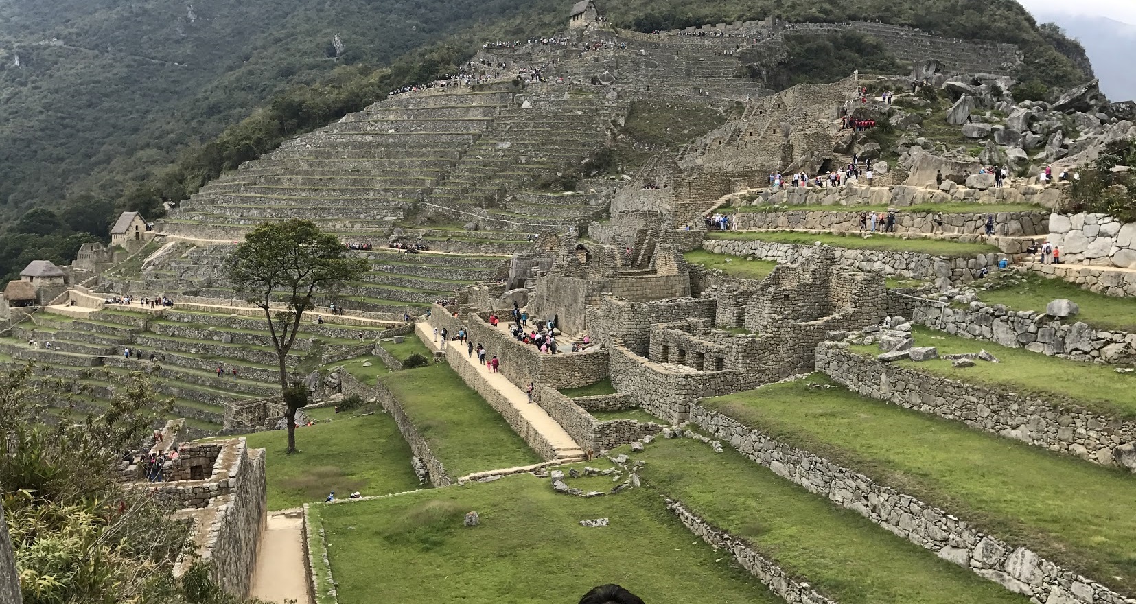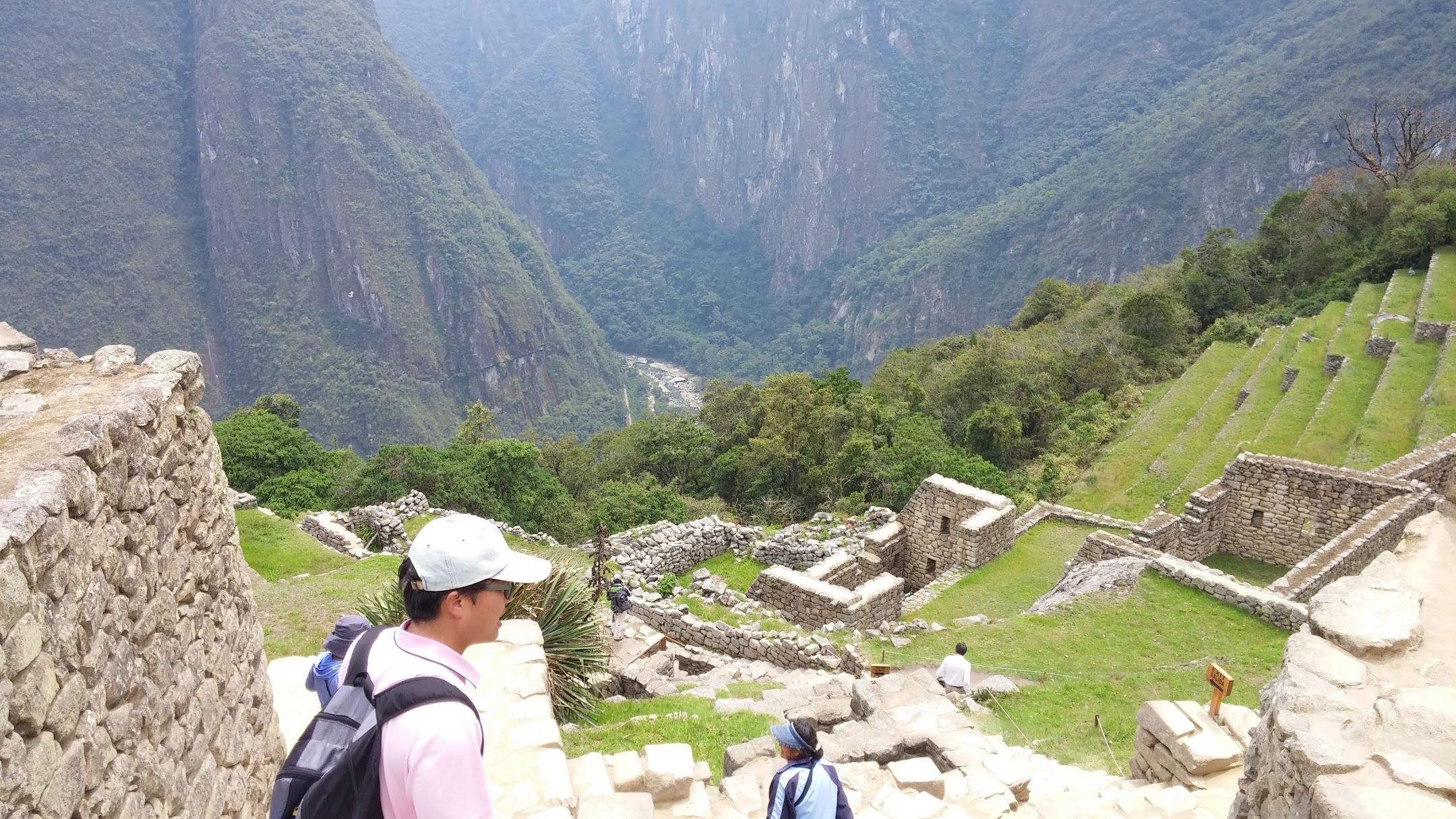 와이나픽추를 내려오는 길은 금방이었습니다. 아재들은 다시 마추픽추 구경을 재개했습니다. 이때 즈음에는 안개도 모두 걷혀서 깔끔하게 드러난 마추픽추의 모습을 한껏 즐길 수 있었습니다. 일단 사진부터 보시지요. 참고로 저 멀리 보이는 계단식 구조물이 경작지라고 합니다. 우리네 계단식 논과 비슷합니다.