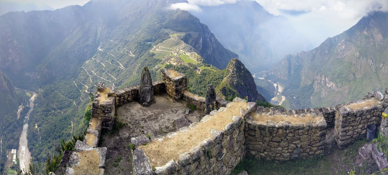 마침내 아재들은 와이나픽추 정상에도 도달했습니다. 와이나픽추 정상에는 큰 볼 거리는 없었습니다. 돌로 이루어진 산 정상이지 아주 특별한 유적은 없었습니다. 하지만 이곳에 올라왔다는 것은 마추픽추에서 가장 높은 곳에 올라왔다는 의미가 있었습니다. 게다가 산 정상에서 주위로 병풍처럼 펼쳐진 안데스 산맥의 풍경이 장엄한 자태를 드러내고 있었습니다. 마침 안개도 적당히 걷히고 나니 이런 풍경이 다른 어디에 있을까 싶은데 그 느낌이 마치 오래된 산수화에서 태산절경을 묘사해 놓은 듯 했습니다. 아아 산수화에서 보던 그런 산들이 진짜로 존재하는구나 생각이 자연스레 들었습니다.