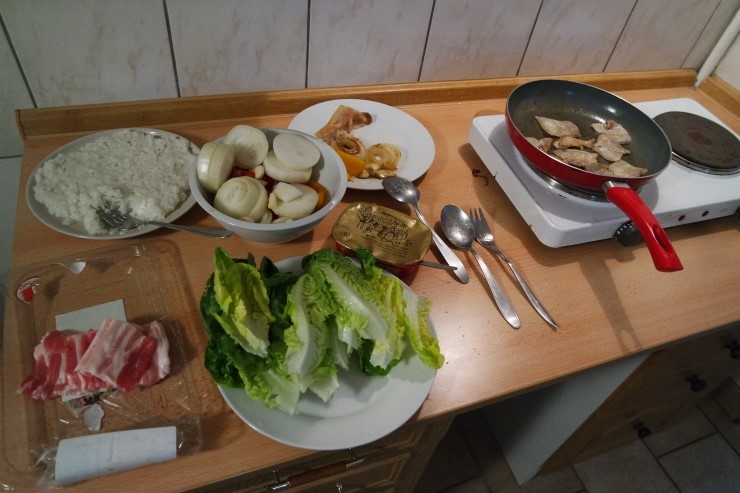 다음 날은 한국의 삼겹살을 그리워하길래, 삼겹살 해먹었어요 ㅋㅋ