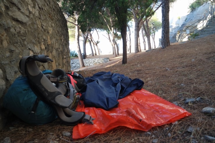 성 근처 외진 곳에서 야영을 했는데, 여름이라 다행히 춥지 않았습니다.