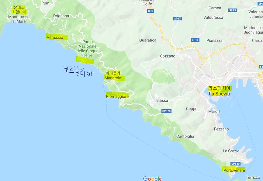 *라스페치아 위 쪽으로는 아름다운 5개의 마을로 이미 유명해지고, 관광화 되어버린 친퀘테레(Cinqueterre)를 볼 수 있습니다.